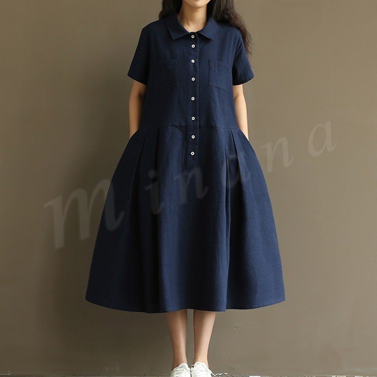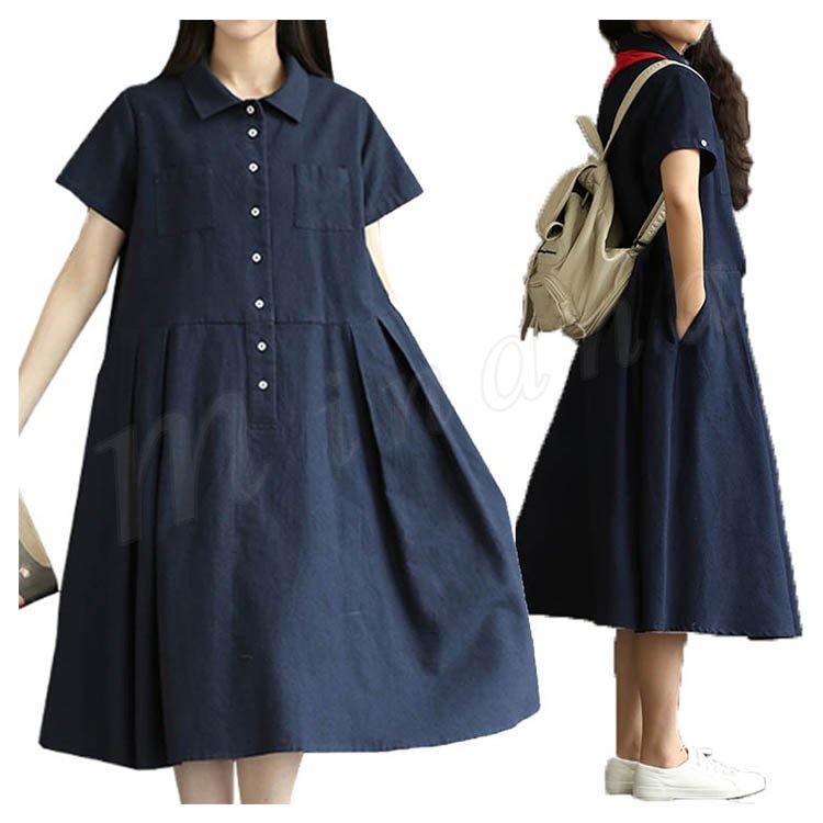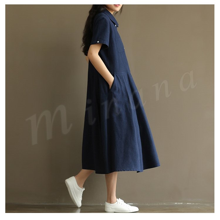 マキシワンピース 半袖 リゾート ワンピース レディース 無地 フレアワンピース Aライン 大きいサイズ ロング リネン ワンピース 2018春夏新作