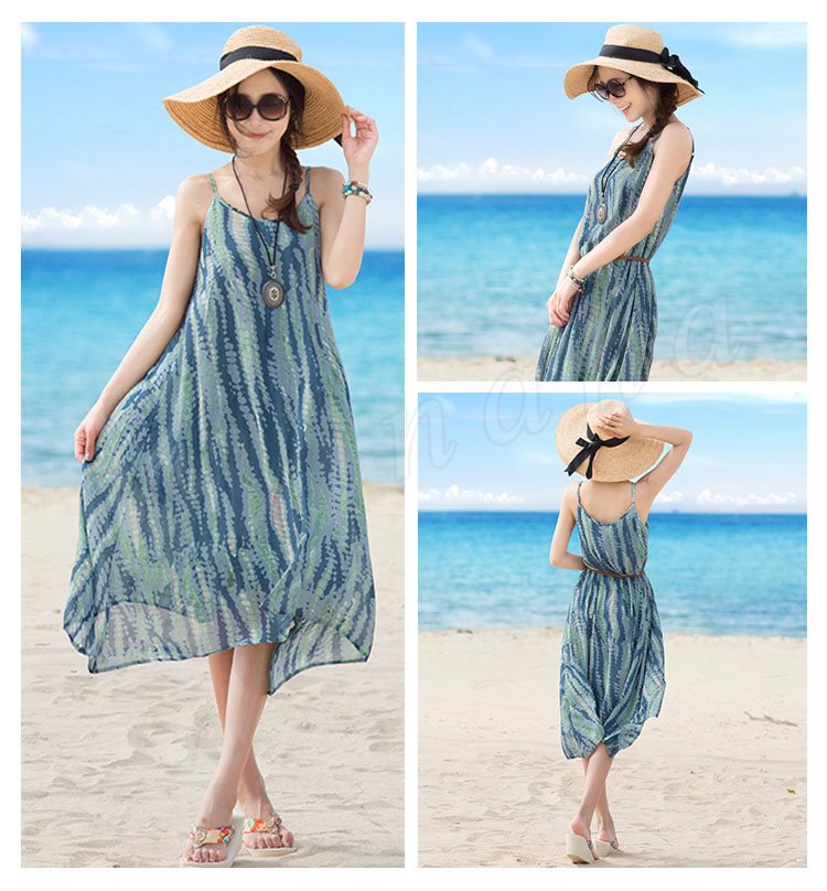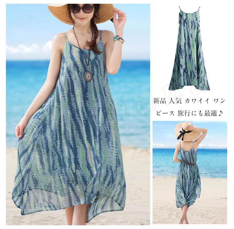 ワンピース レディース ワンピース 夏 フレアスカート 海ワンピ ボヘミア 大きいサイズ 海辺 ノースリーブ ショートワンピース シフォンワンピース