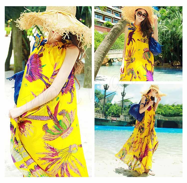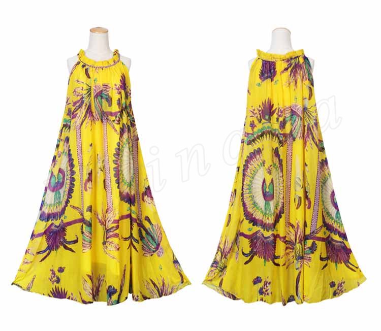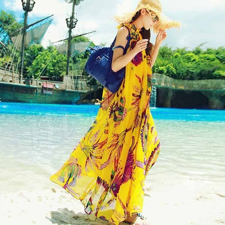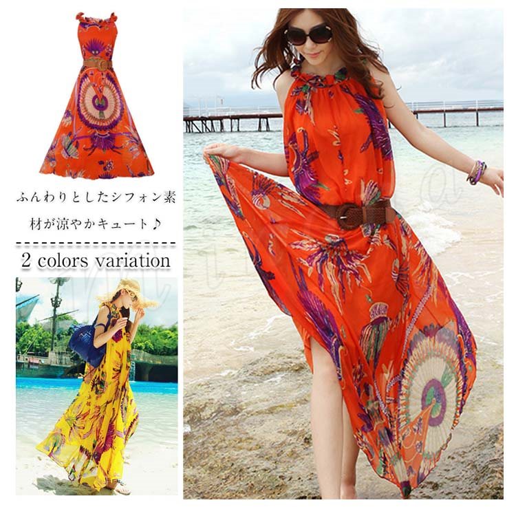 マキシ丈ワンピース ロング レディース ノースリーブ 体型カバー 花柄 Aライン フレア シンプル セクシー 女性用 夏服 UV対策 ふわふわ リゾー