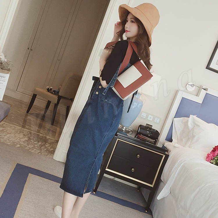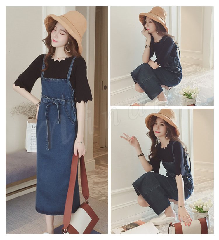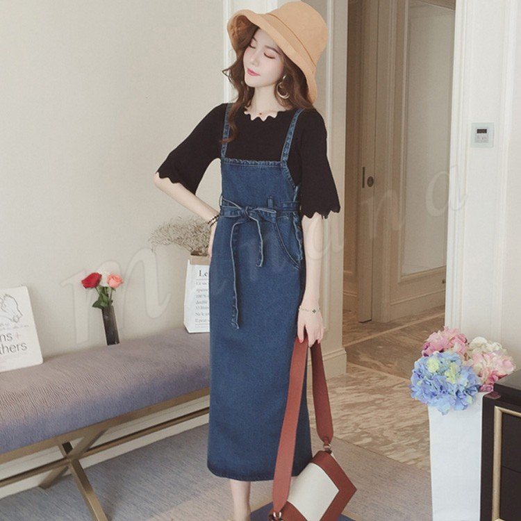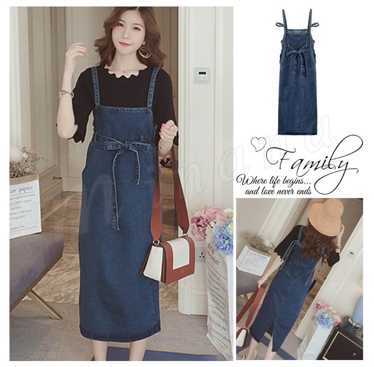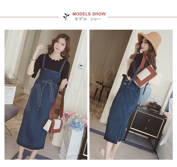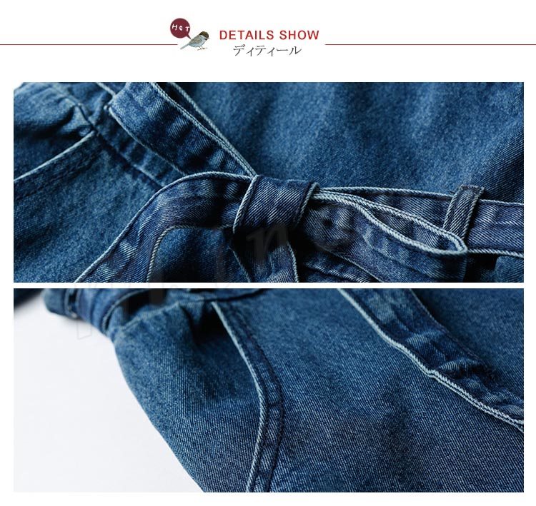 ワンピース レディース デニム サロペット 春 夏 膝丈 着痩せ デニムワンピース 通勤