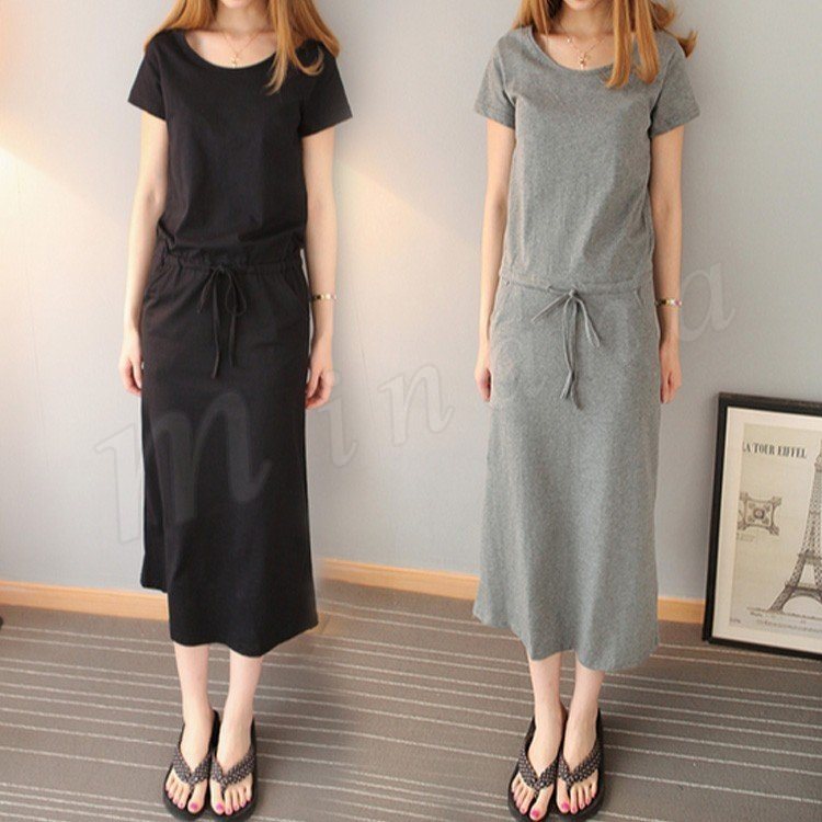 クールネック Tシャツ ワンピース マキシ丈 半袖 ワンピース ラウンドネック ロングTシャツ ロングT チュニック ワンピース レディー
