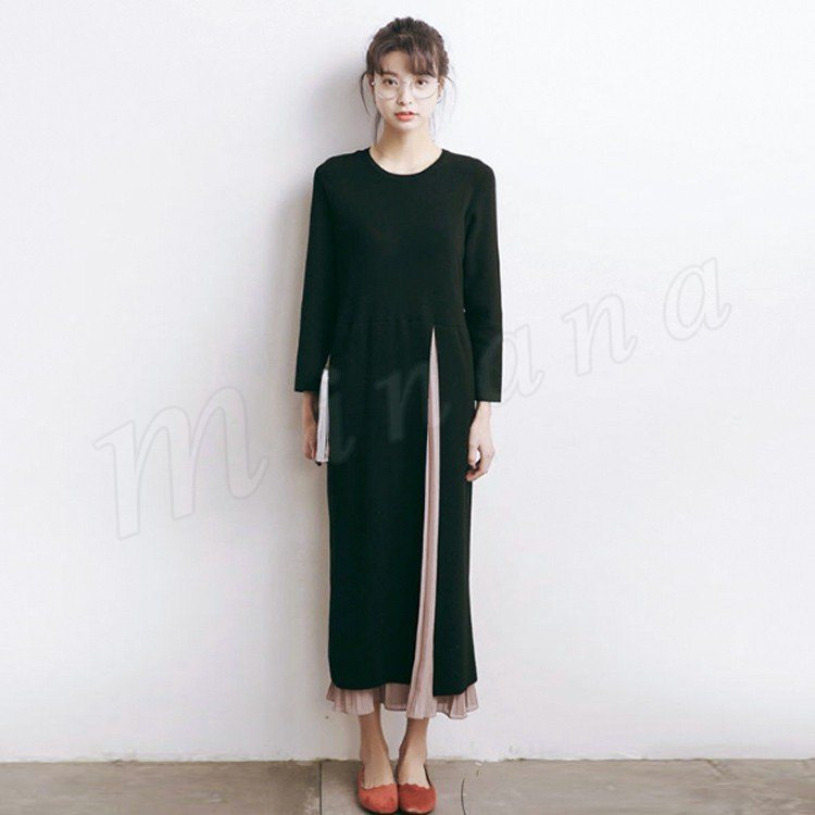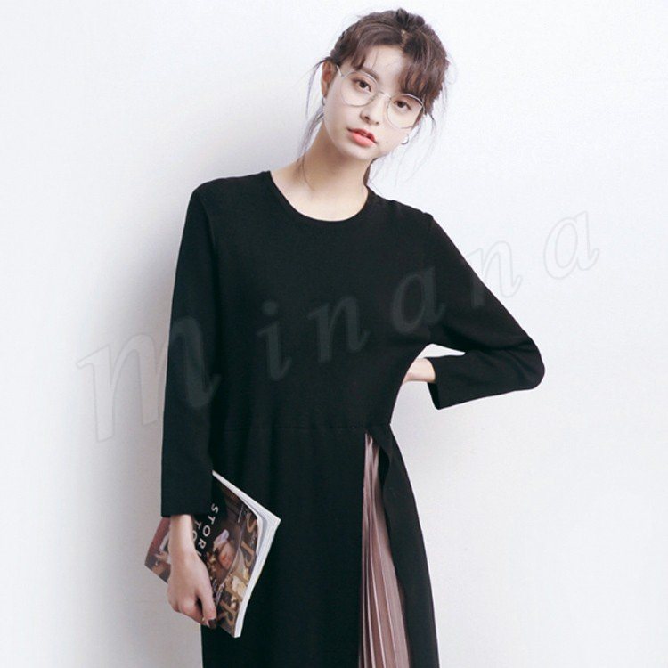 サイドシフォン 切替 ニットワンピース ロング サイドプリーツ切替ワンピース サイドプリーツ ニットワンピース サイドシフォン切替ニットワンピ