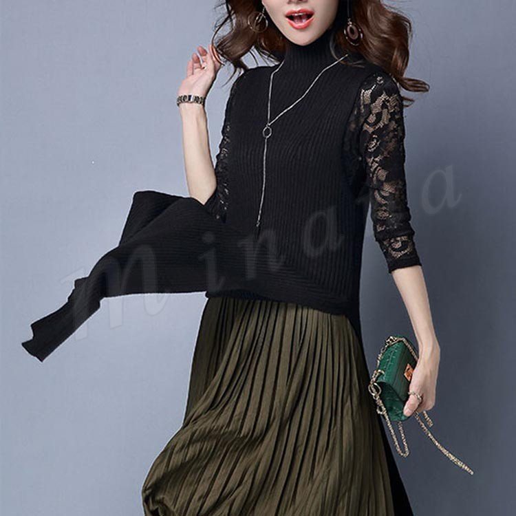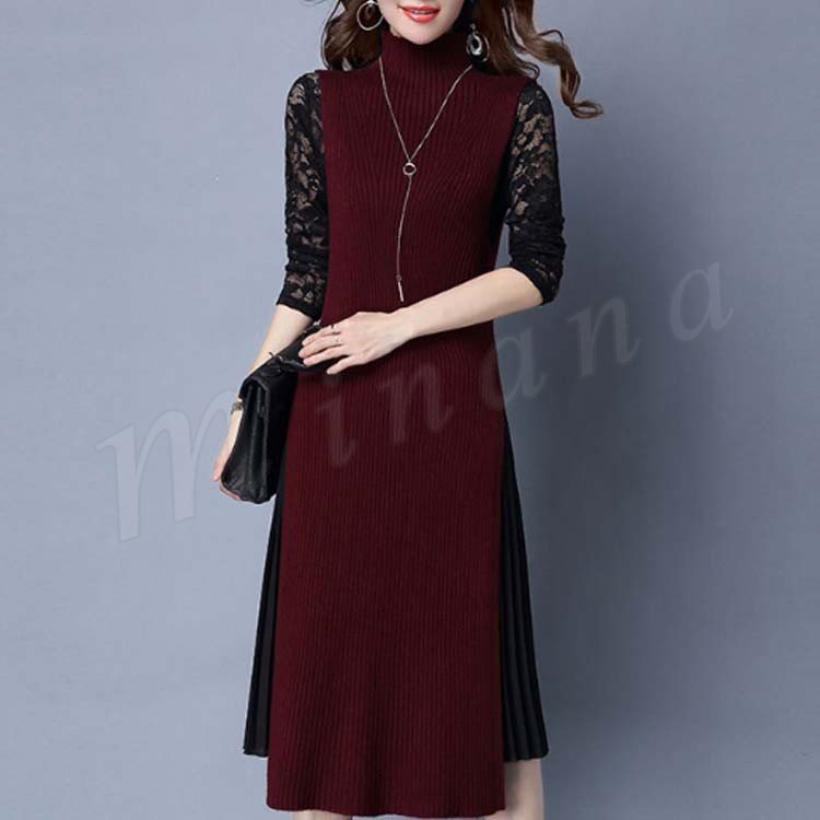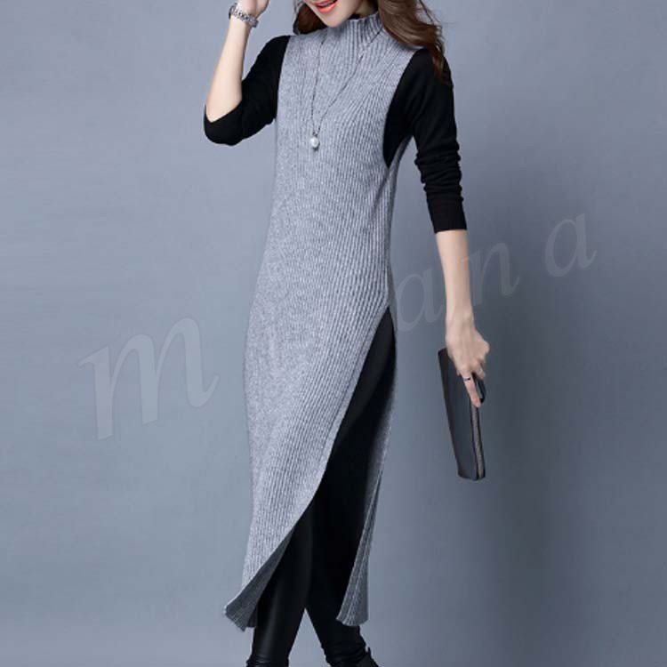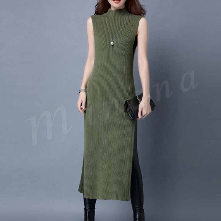 ニットワンピース/ロングワンピ/セーター/ボトルネック/ノースリーブ/サイドスリット/リブニット/マキシ丈/レディース/フェミニン/セクシー/