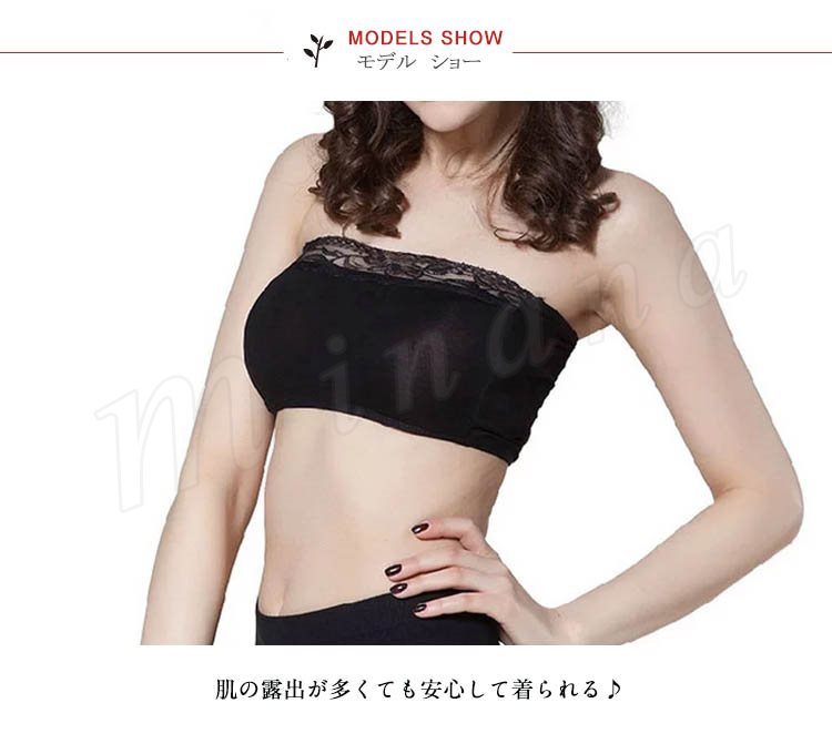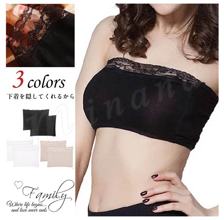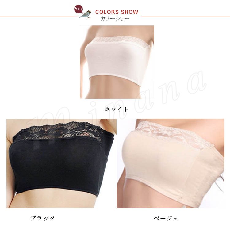 レディース ブラトップ チューブトップ レース 見せブラ ベアトップ カップなし 可愛い 2点セット