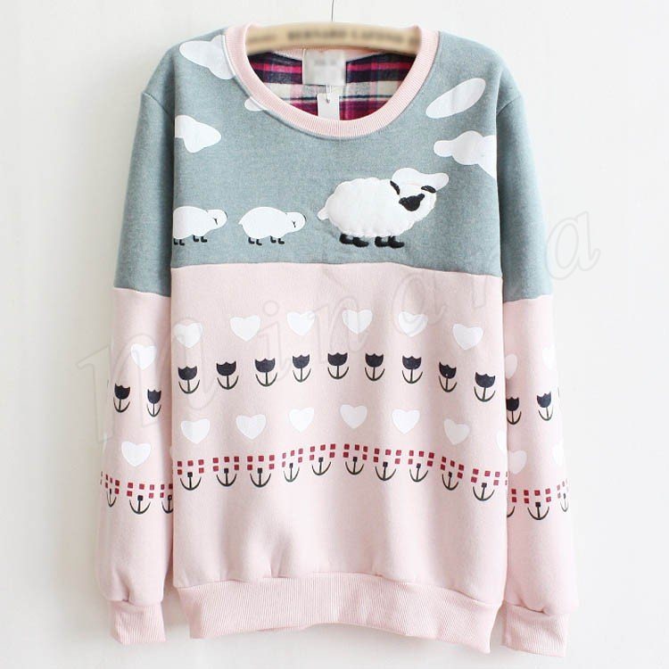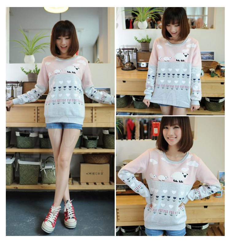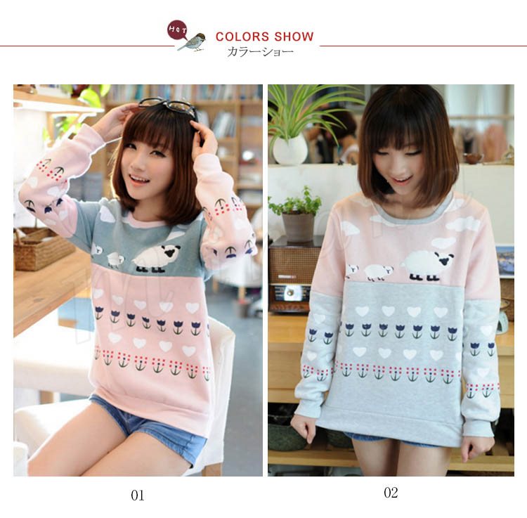 スウェット レディース トレーナー プルオーバー トップス 春秋 カジュアル ゆったり 綿羊柄