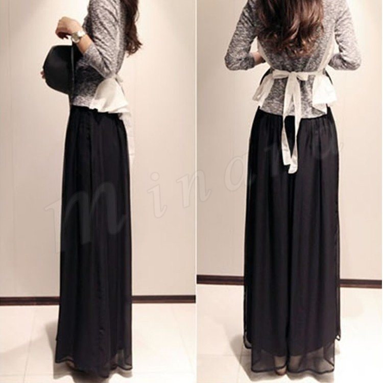 ゆったりスカート風デザインは着痩せ効果バツグン!シフォンロングパンツ ロング丈スカート風 レディース ワイドパンツ ガチョウパンツ ZOKO