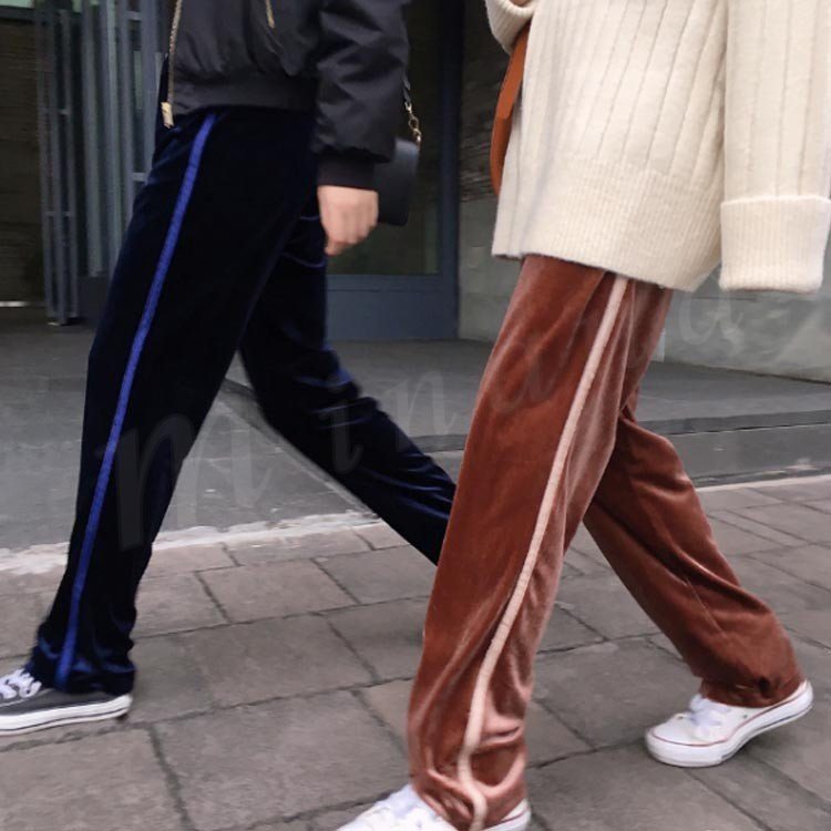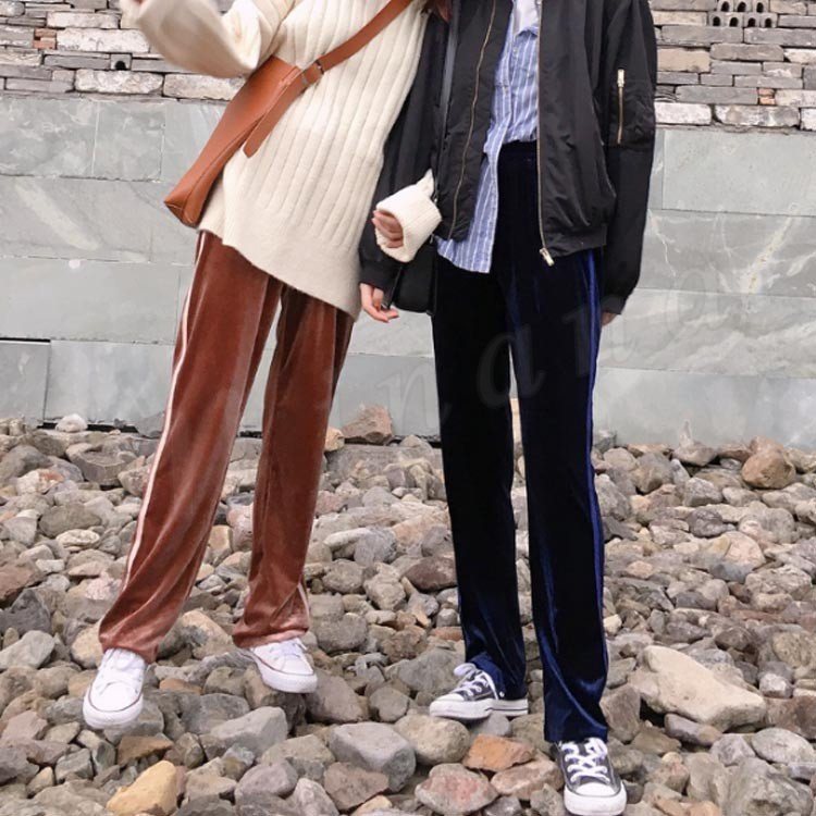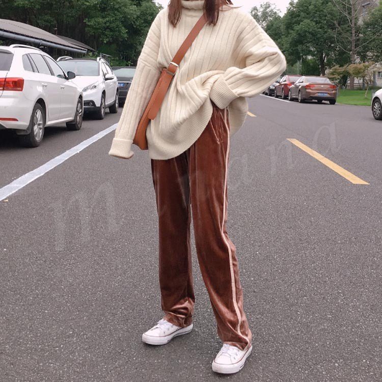 ベロアパンツ ワイドパンツ ガウチョ レディース 秋冬パンツ ベルベット ストライブ切り替え ロングパンツ 柔らか 体型カバー 秋冬新作