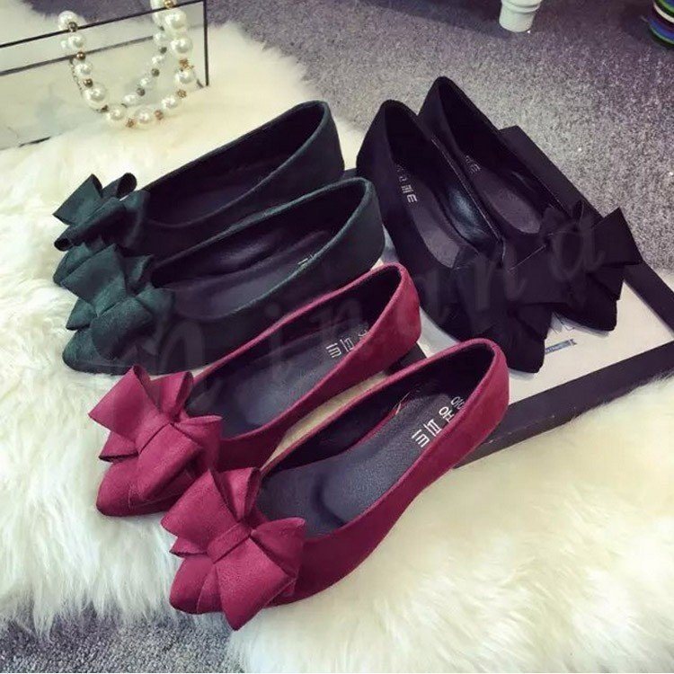 靴 シューズ レディース ポインテッドトゥ パンプス フラットシューズ ぺたんこ ローヒール ビッグ リボン 靴 フェイクスエード