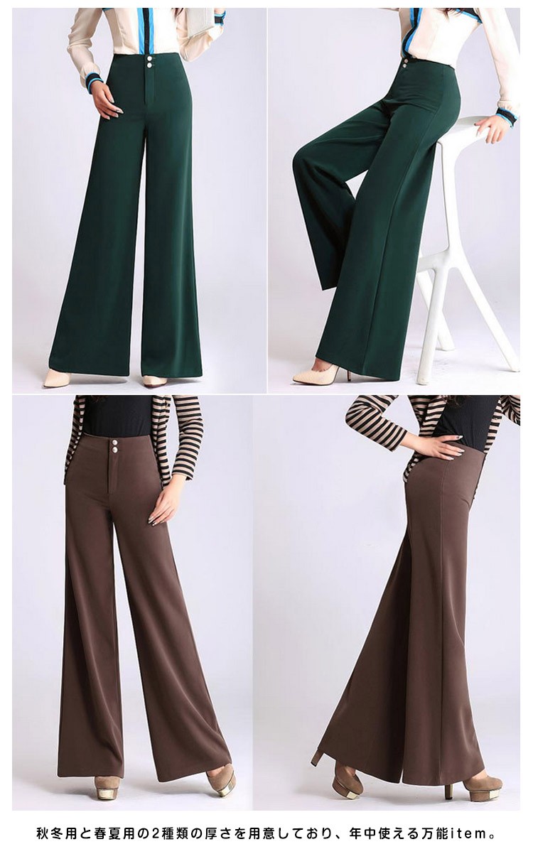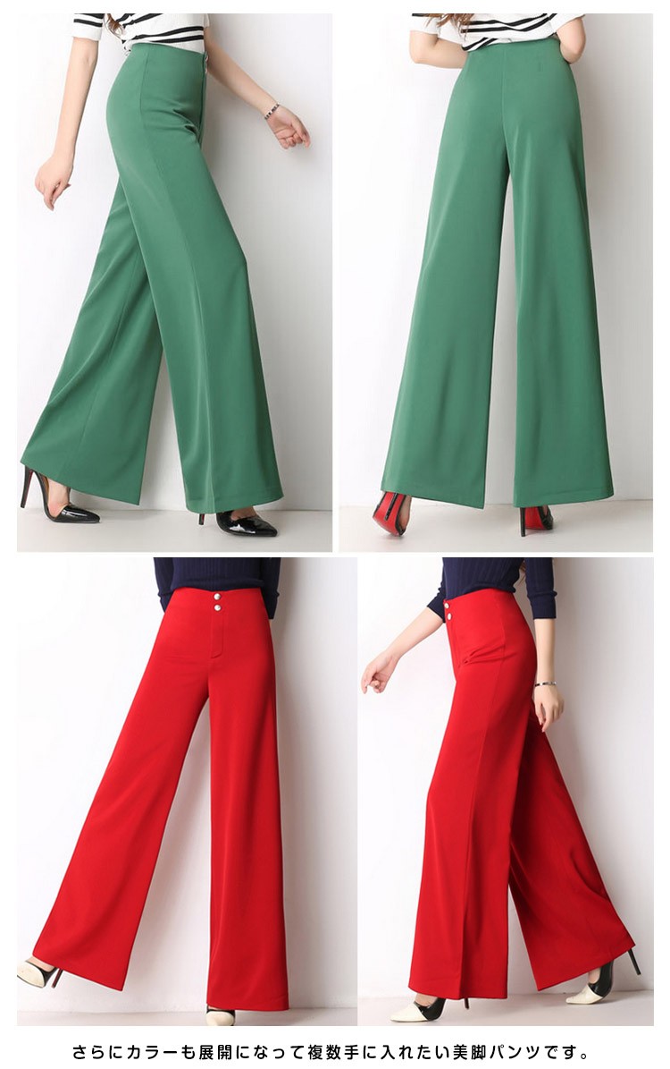 脚長効果を強調する10分丈。ストレートパンツ ワイドパンツ ロングパンツ ガウチョパンツ ワイドパンツ フレア 10分丈 美脚パンツ ハイウエ