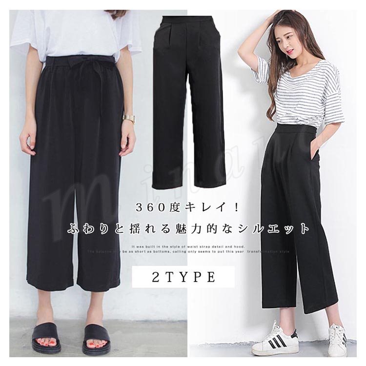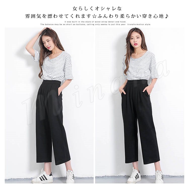 ワイドパンツ ハイウェスト ガウチョパンツ シフォン パンツ フレアパンツ クロップドパンツ 7分丈 9分丈 春夏 ロングパンツ レディース