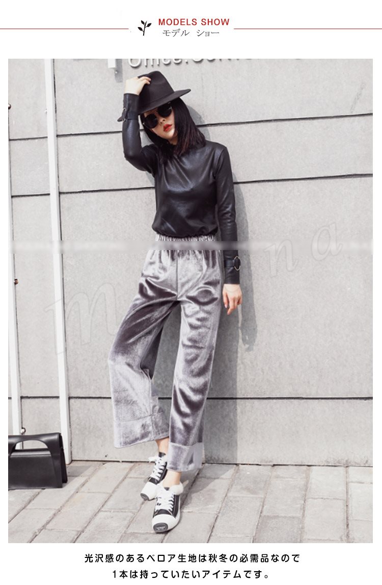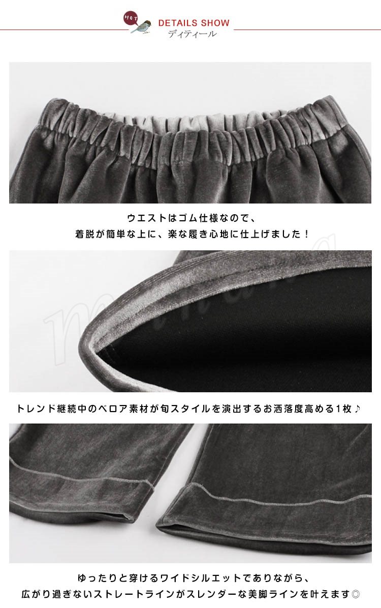 ベロア ワイドパンツ ロングパンツ ストレートワイドパンツ レディース ボトムス パンツ ワイドパンツ ストレート ベロア 秋 冬 トレンド