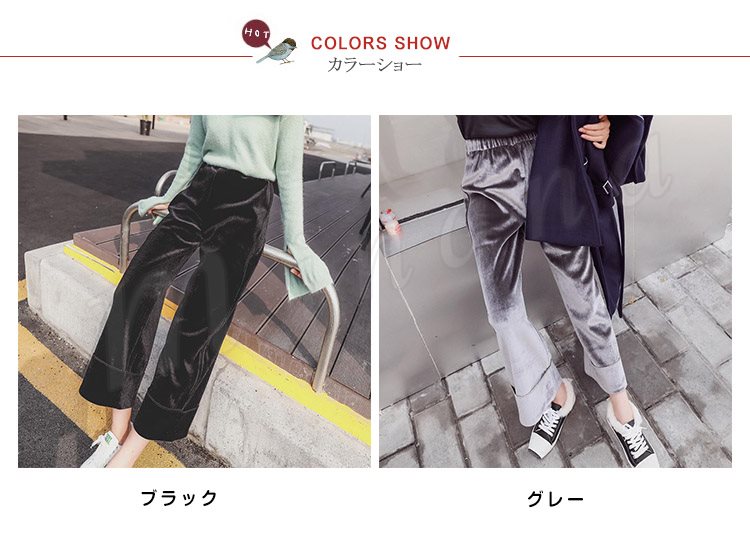 光沢感のあるベロア生地は秋冬の必需品なので1本は持っていたいアイテムです。