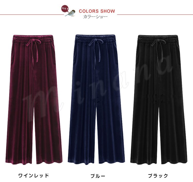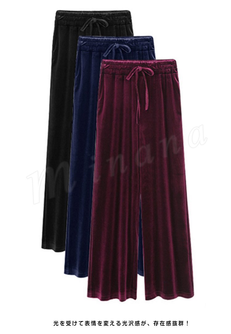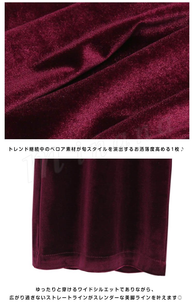 ストレート パンツ ベロア ワイドパンツ ガウチョパンツ ベロア ロングパンツ ストレート ワイドパンツ ボトムス パンツ ワイドパンツ 秋