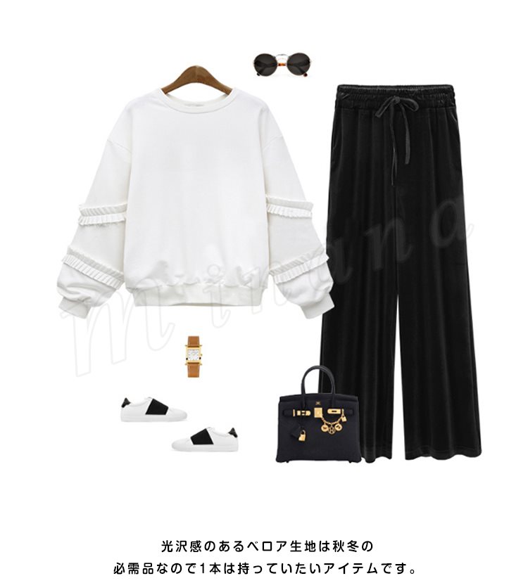 光沢感のあるベロア生地は秋冬の必需品なので1本は持っていたいアイテムです。
