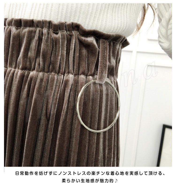 光沢感のあるベロア生地は秋冬の必需品なので1本は持っていたいアイテムです。