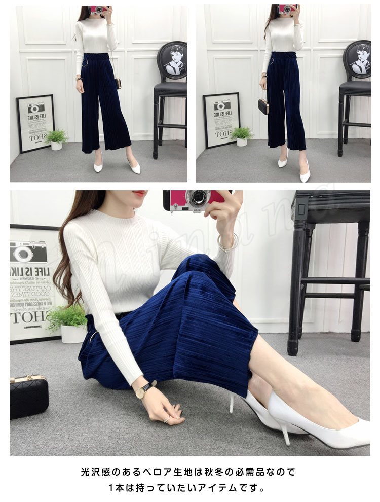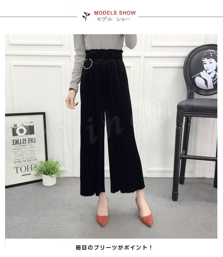 ワイドパンツ プリーツ パンツ ベロア ワイドパンツ ガウチョパンツ ベロア ロングパンツ ストレート ワイドパンツ ボトムス パンツ 秋 冬