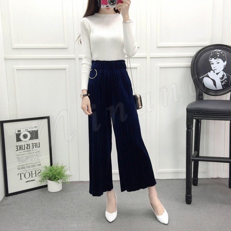 | 今季トレンド感のあるベロア生地とプリーツデザインのワイドパンツ。 細目のプリーツがポイント! ウエストはゴム仕様でノンストレスですが、トップスインでもすっきり見えるのが嬉しい! 光沢感のあるベロア生地は秋冬の必需品なので1本は持っていたいアイテムです。 | |