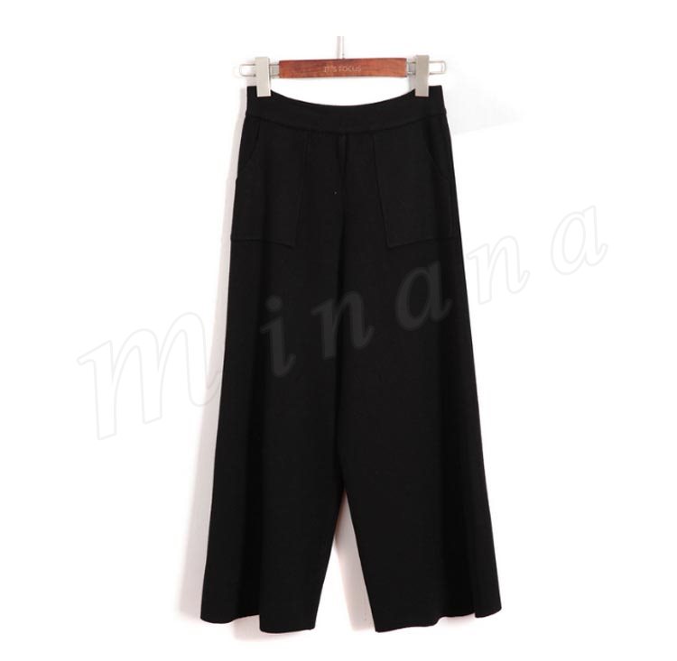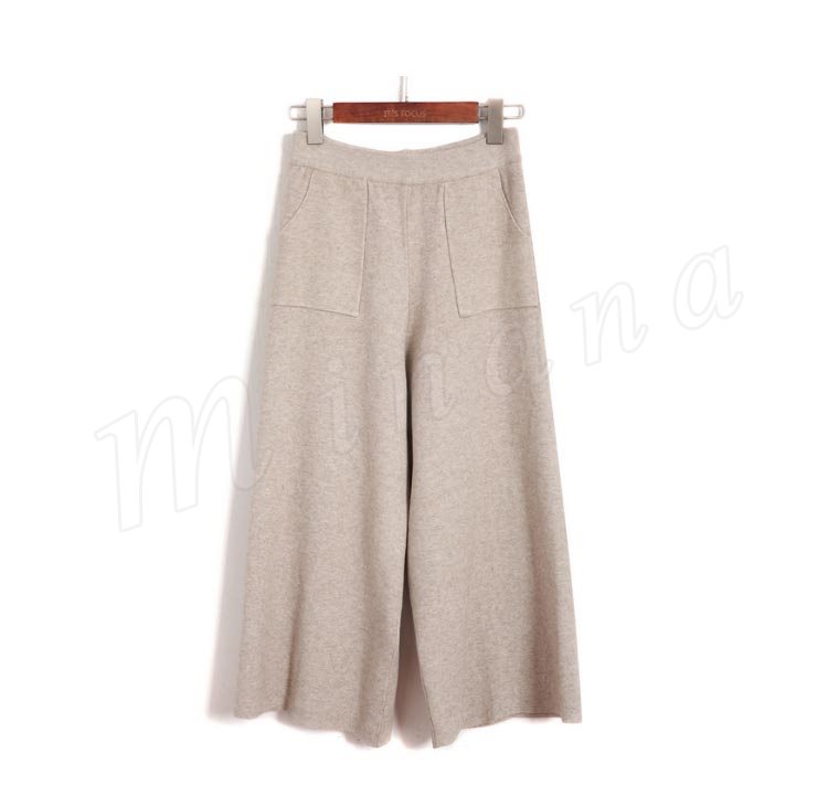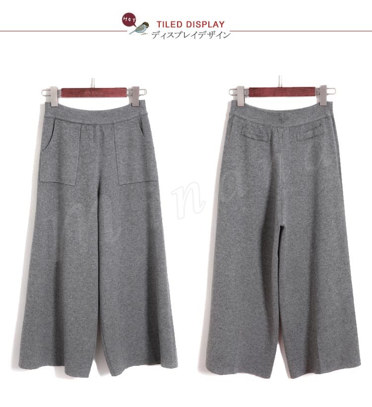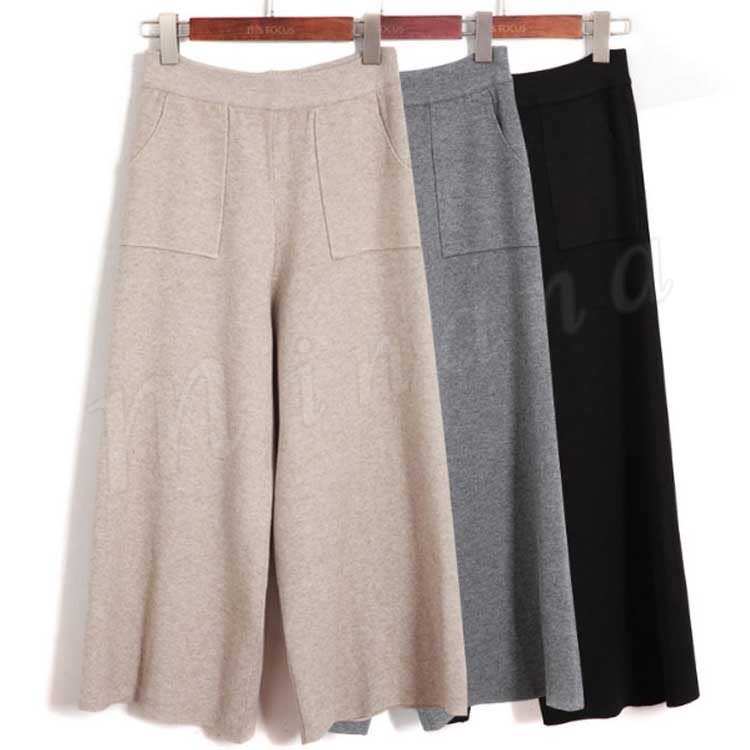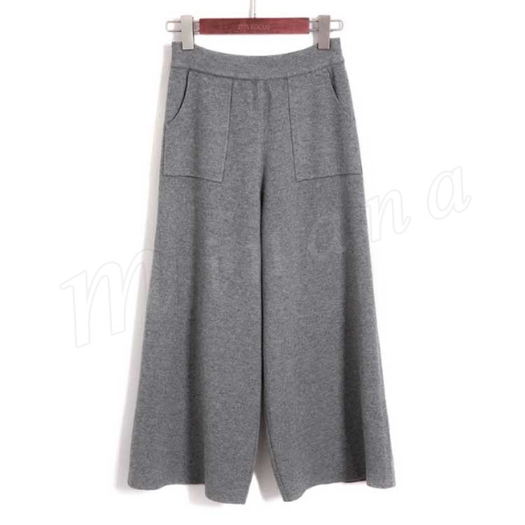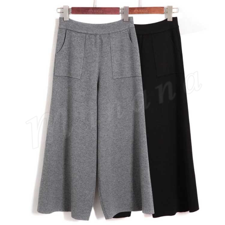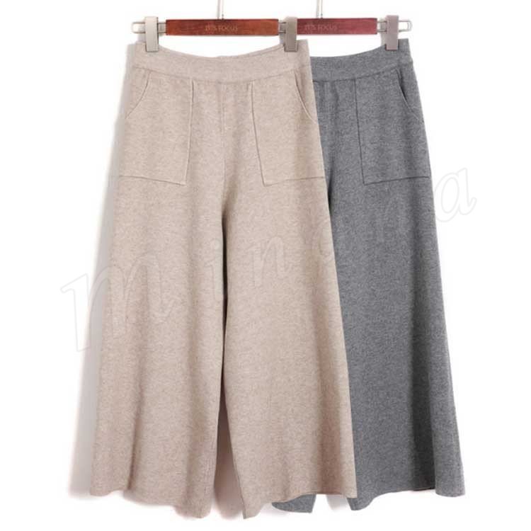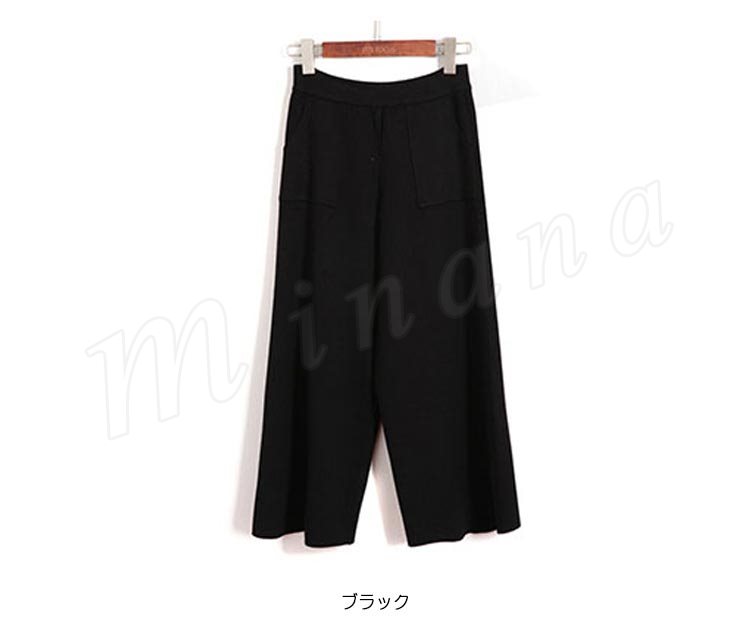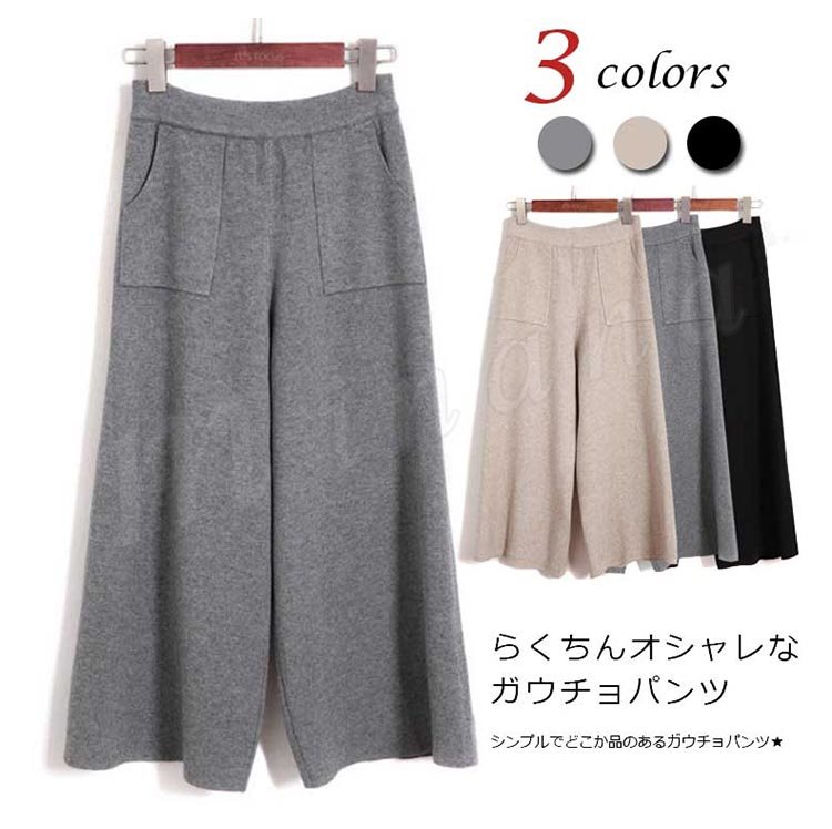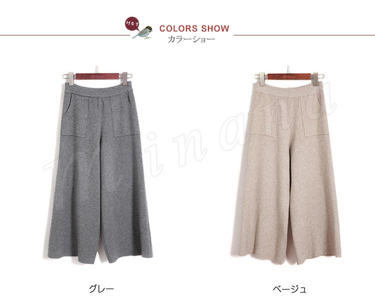 ニットガウチョパンツ/ガウチョパンツ/スカンツ/バギーパンツ/レディース/9分丈/ボトムス/クロップドパンツ/フレアパンツ/ニットパンツ/秋冬