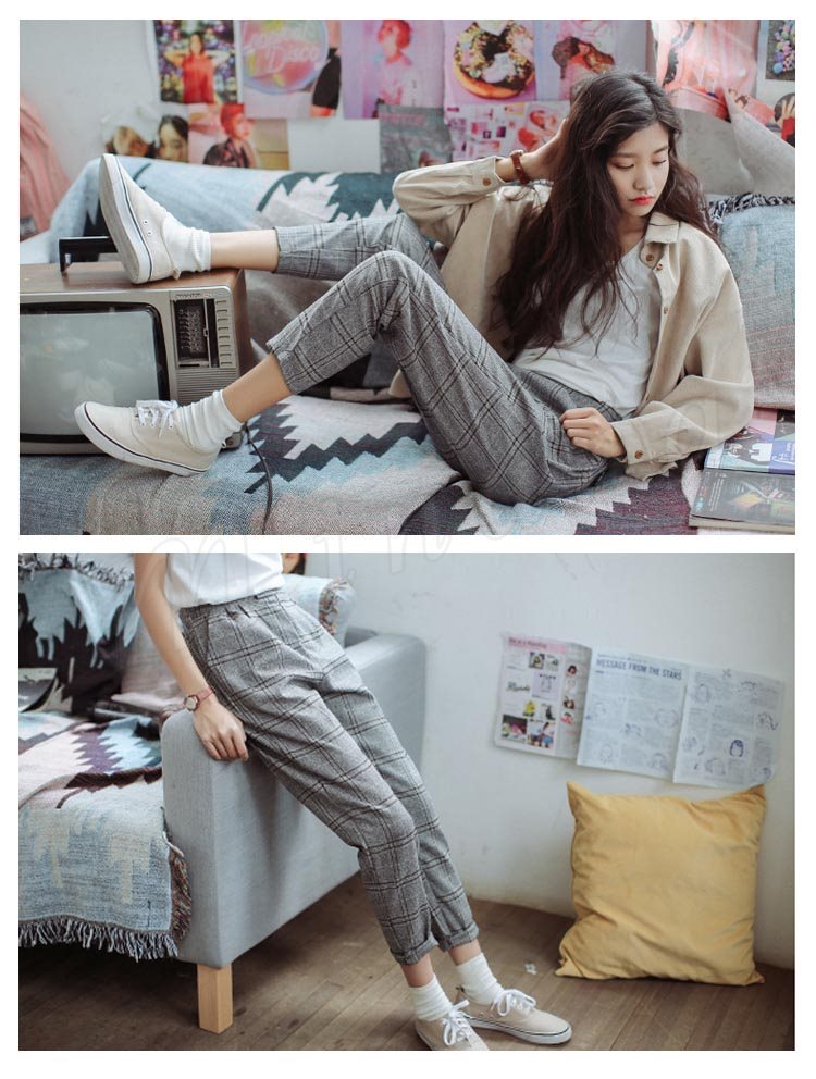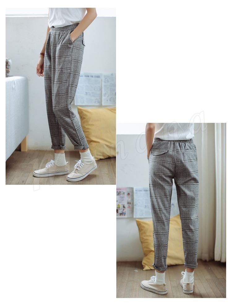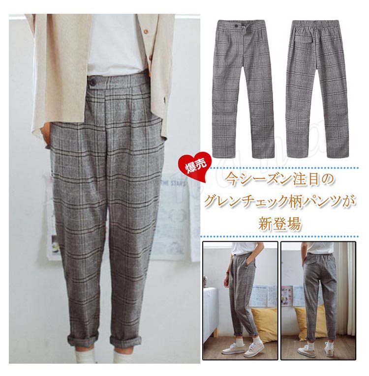 グレンチェック/レディース/九分丈パンツ/スキニーパンツ/カジュアルパンツ/ゆるパンツ/アンクルパンツ/ボトムス/ポケット付き/美脚/ルーズ/
