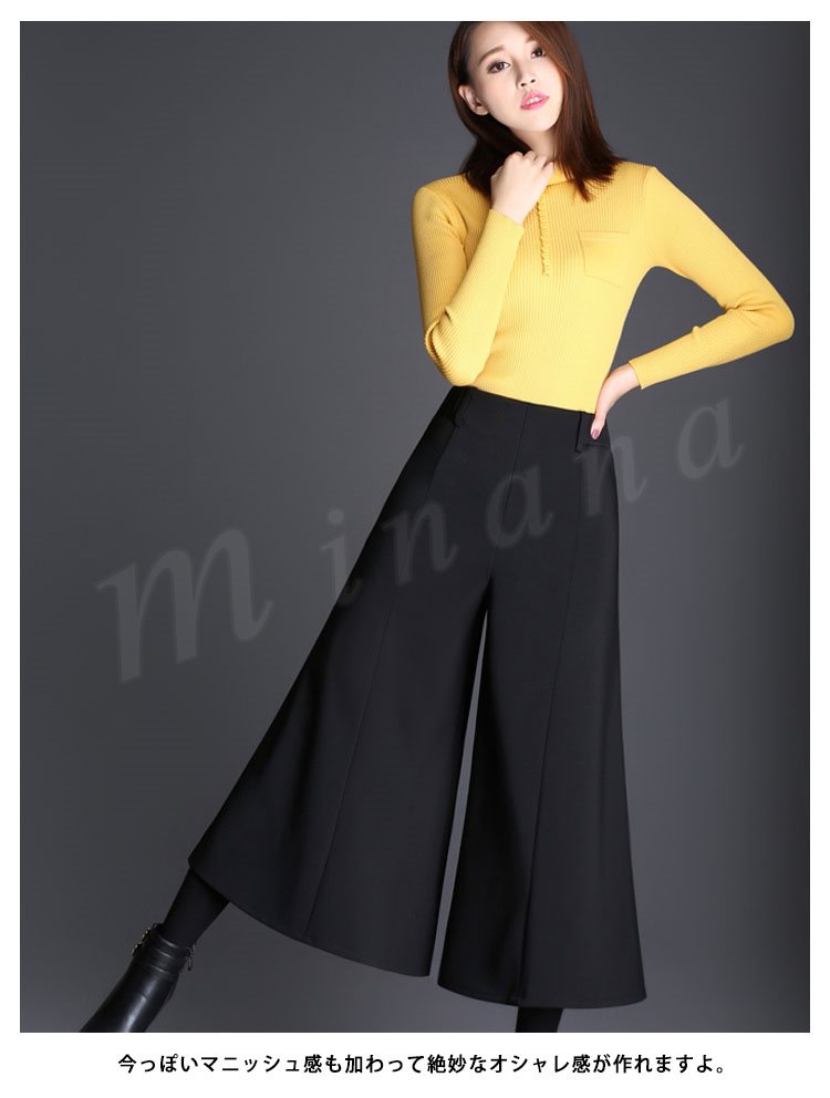 ガウチョパンツ レディース ガウチョ ワイドパンツ ボトムス パンツ ロング 9分丈 ハイウェスト 美脚 ゆったり カジュアル ガウチョ ワイ