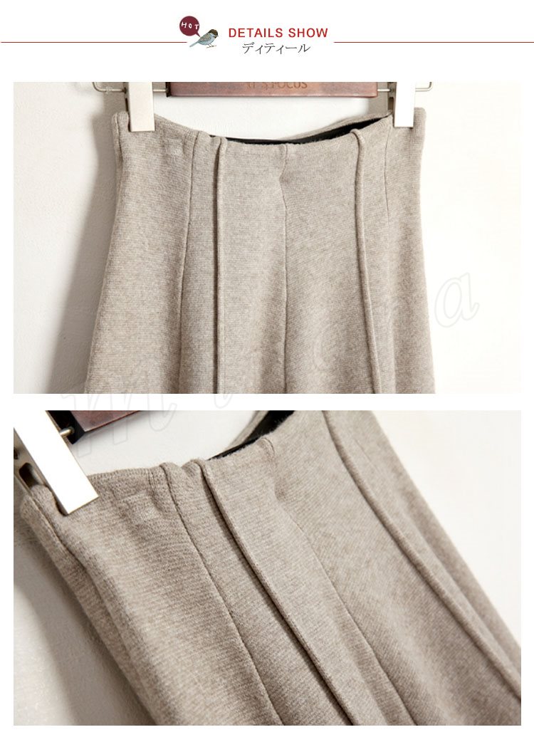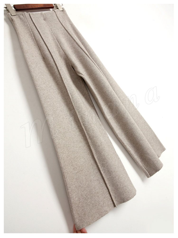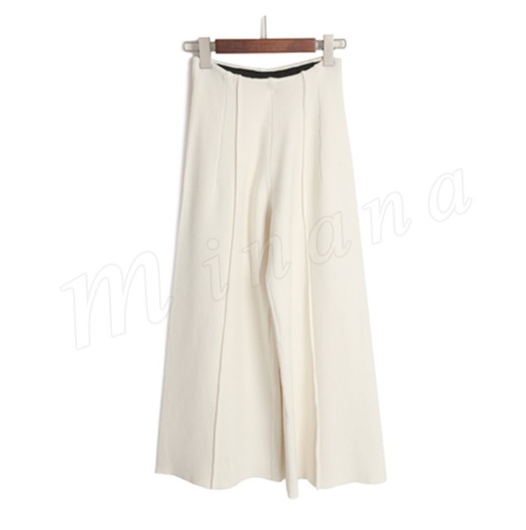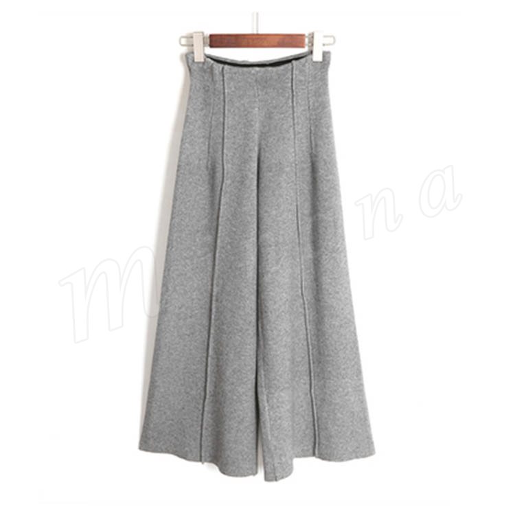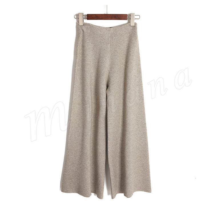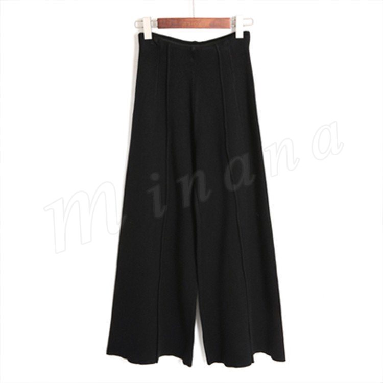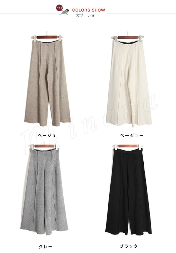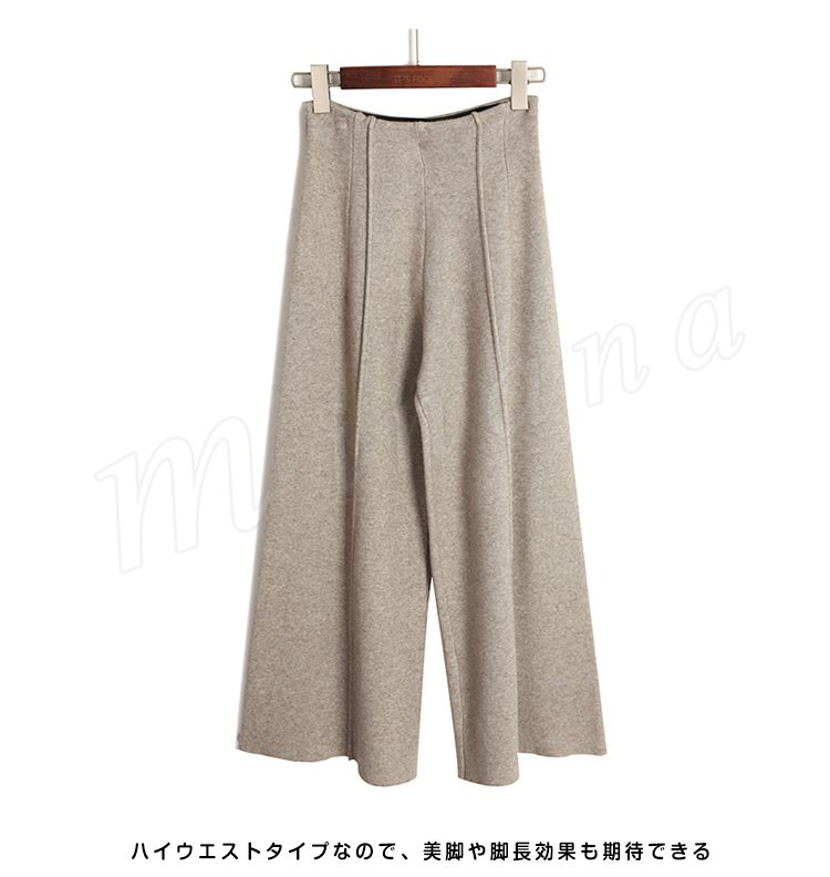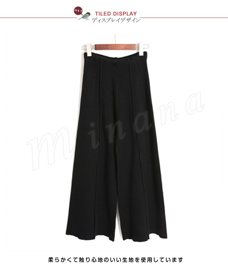 ニットパンツ/レディース/ガウチョパンツ/ワイドパンツ/九分丈パンツ/ロングパンツ/純色/無地/ハイウエスト/ウエストゴム/伸縮性/カジュアル