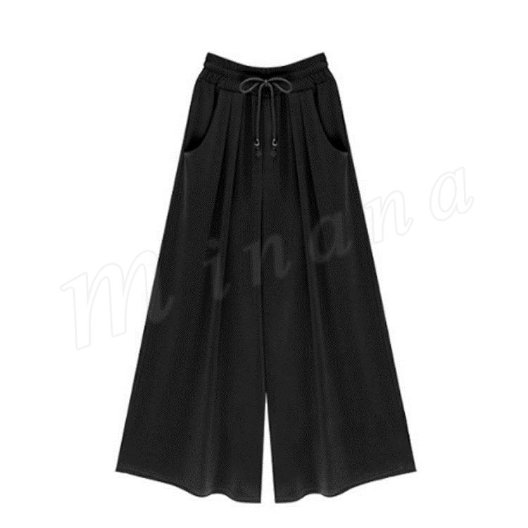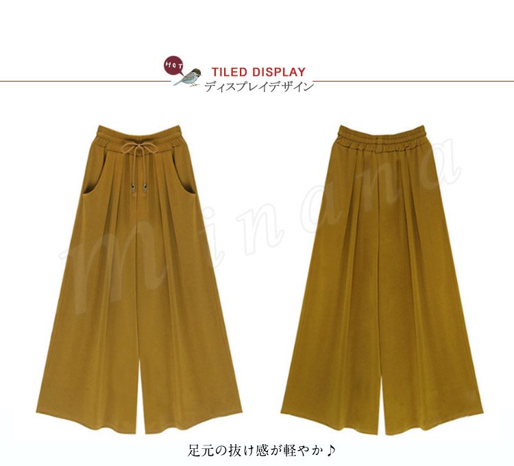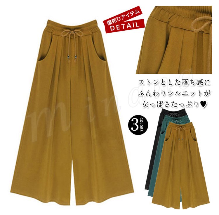 ワイドパンツ レディース 春夏秋 フレア ワイドルーズ イージーパンツ ジャージー生地 ポケットあり アンクル丈 伸縮性あり 裏地なし 透け感