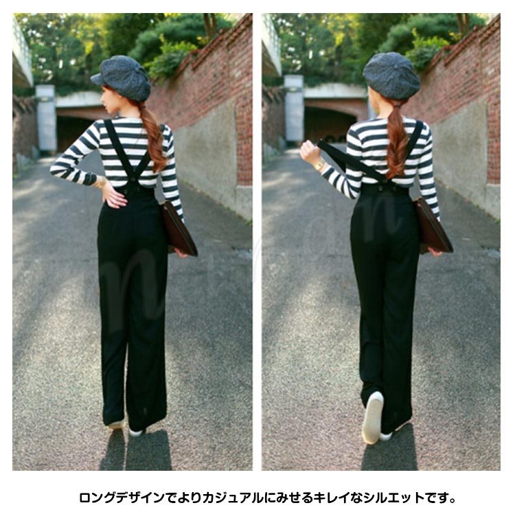 ワイドサスペンダーパンツ 無地ワイドパンツ サスペンダー付きワイドパンツ レディース ボトムス ロングパンツ スーツパンツ リラック ZOKO