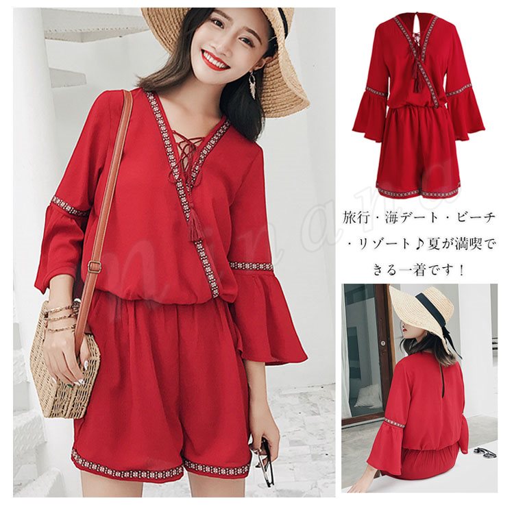 リゾート オールインワン リゾート ファッション レディース オールインワン レディース オールインワン 春 夏 ハイウエスト