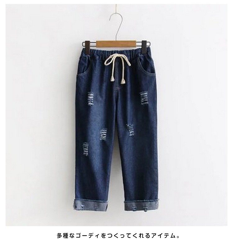 タイプ選び放題のクロップドデニム レディースクロップドパンツ ハイウエスト ロールアップ 切りっぱなし ダメージ ストーンウォッシュ 刺繍