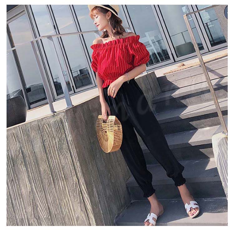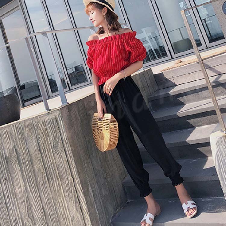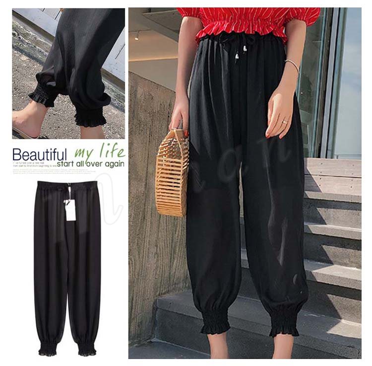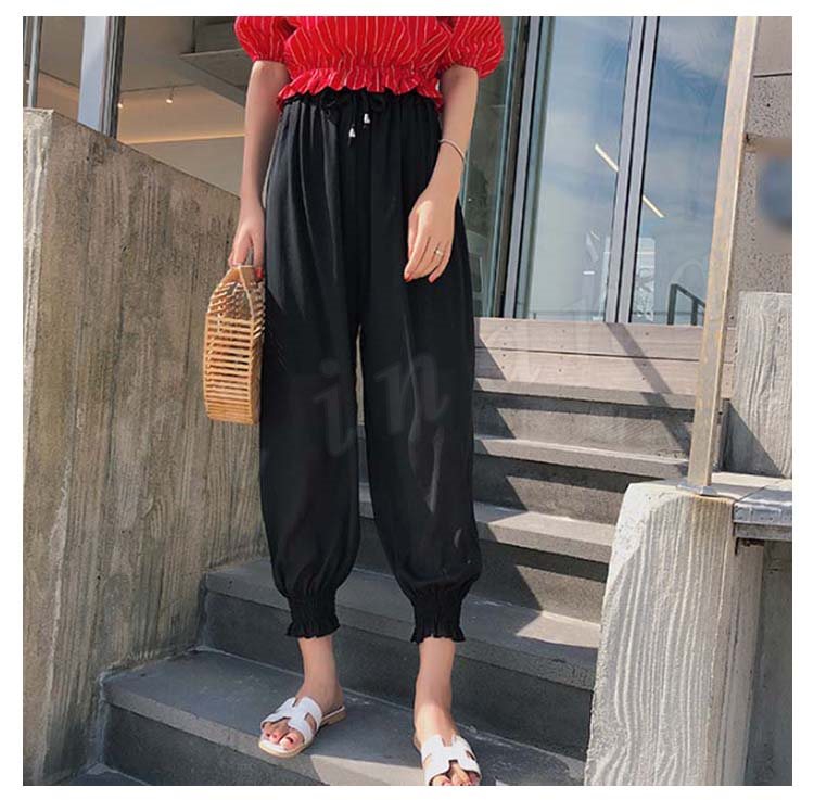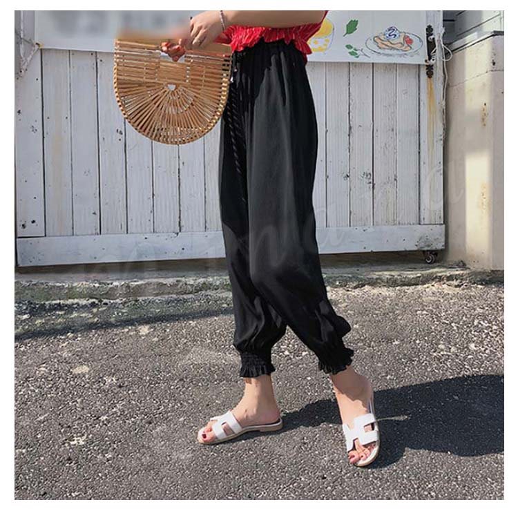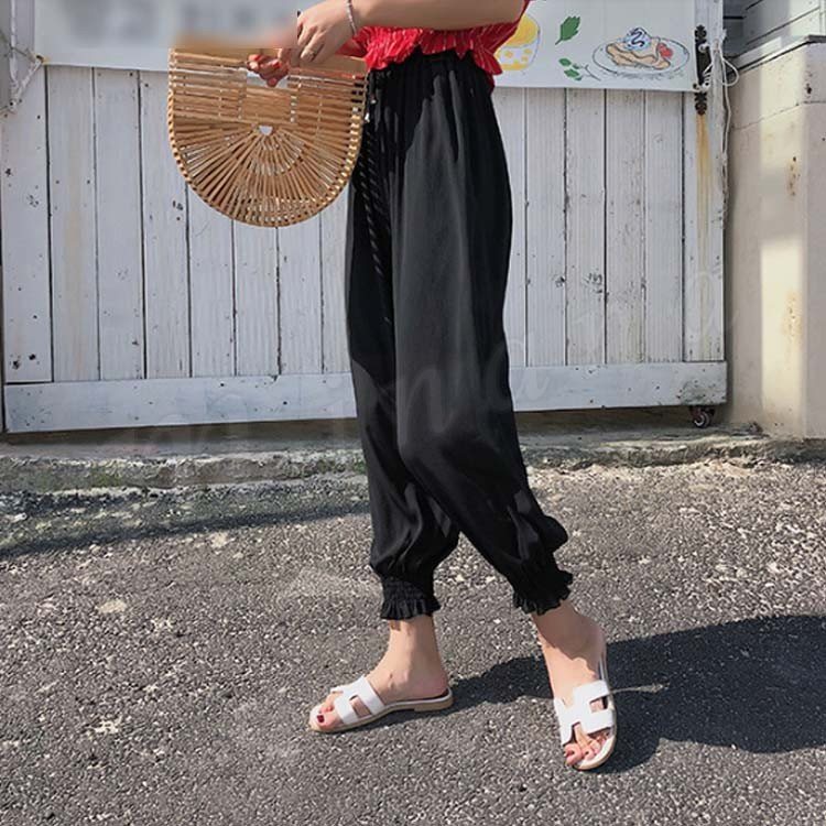 ガウチョパンツ レディース ロングパンツ 九分丈パンツ ボトムス ズボン ニッカーボッカー ロング丈 ベルト付き ウエストゴム ハイウエスト 無地 シ