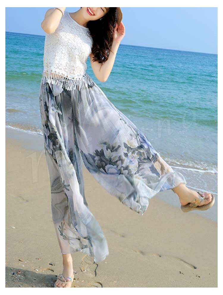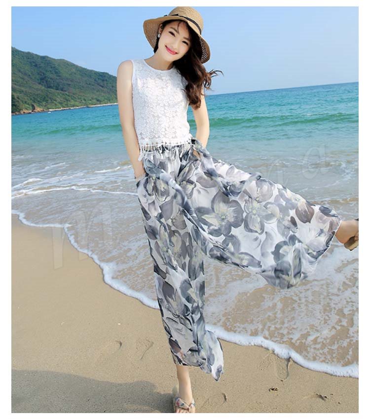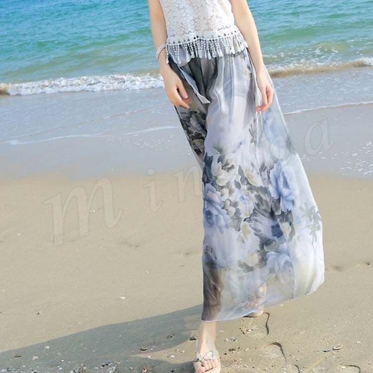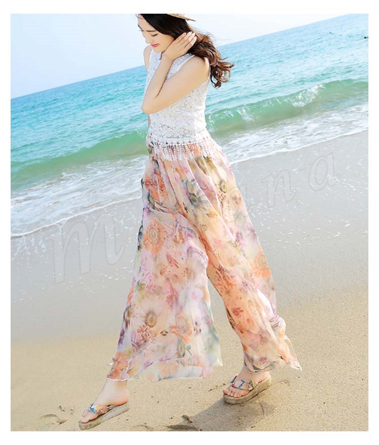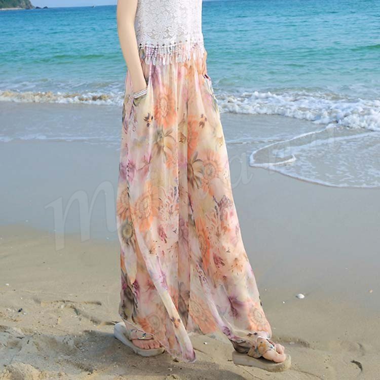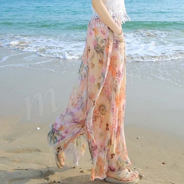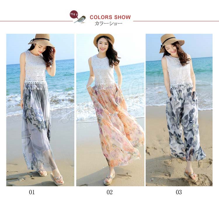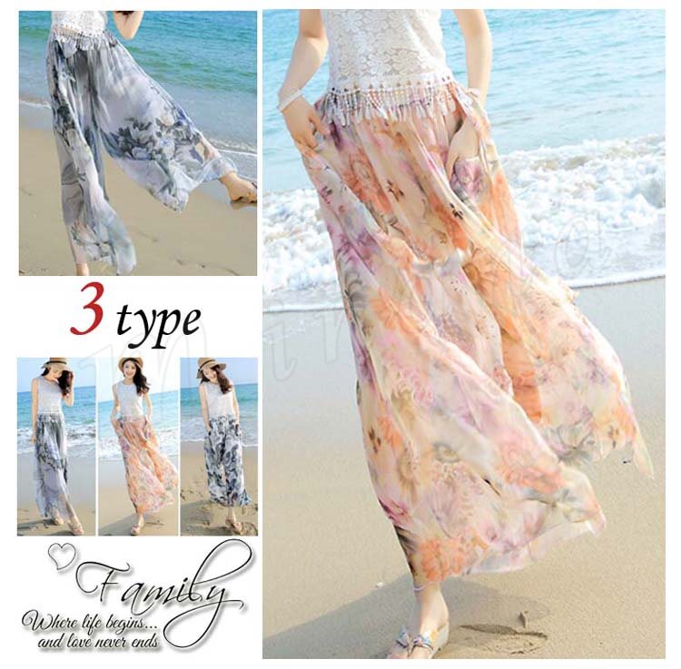 ワイドパンツ レディース シフォン 夏 ロングパンツ ウエストゴム シンプル透け感 ガウチョパンツガウチョ リゾート