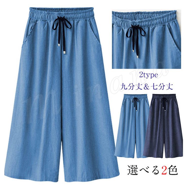 ガウチョパンツ デニム ワイドパンツ スカンツ デニムパンツ レディース ボトムス ロングパンツ ジーンズ ハイウエスト 美脚 デニム 2018春夏新