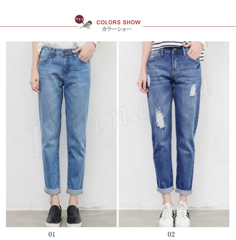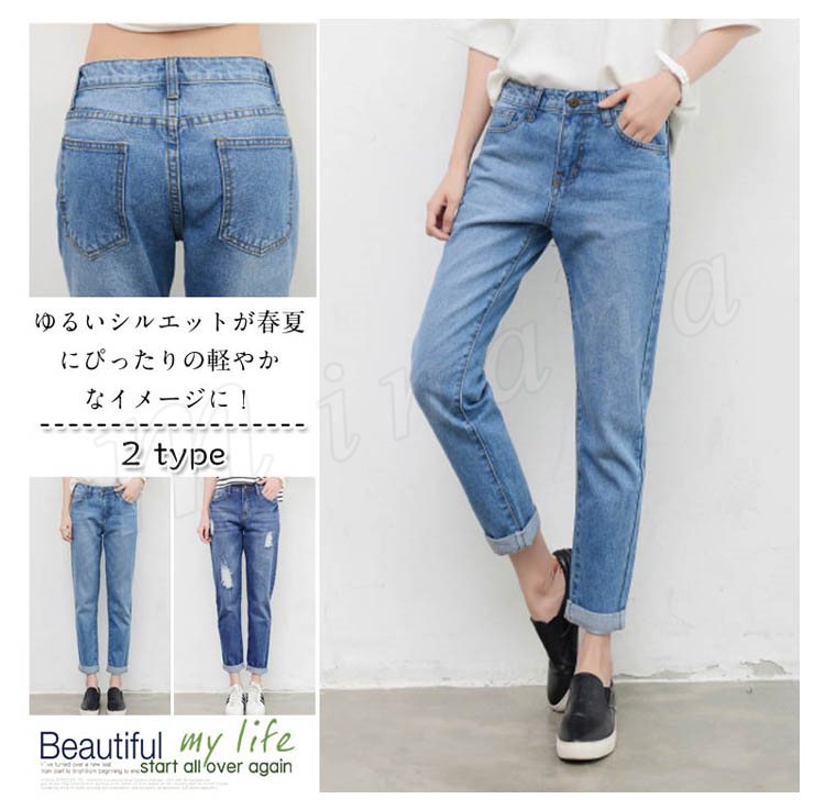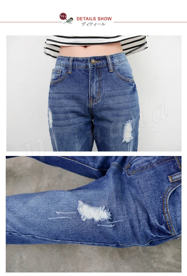デニムパンツ レディース ボトムス ロングパンツ ジーンズ ハイウエスト 美脚 デニム ジーパン ダーメージ 大きいサイズ 2018春夏 新作