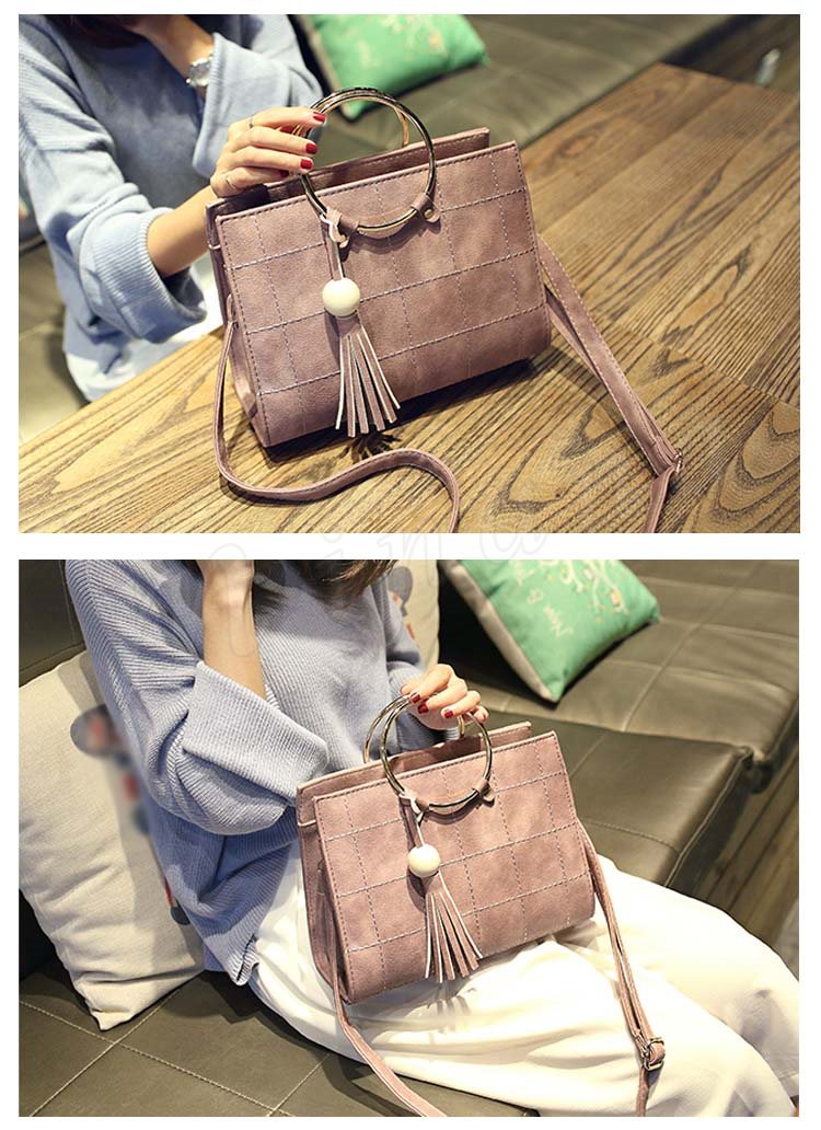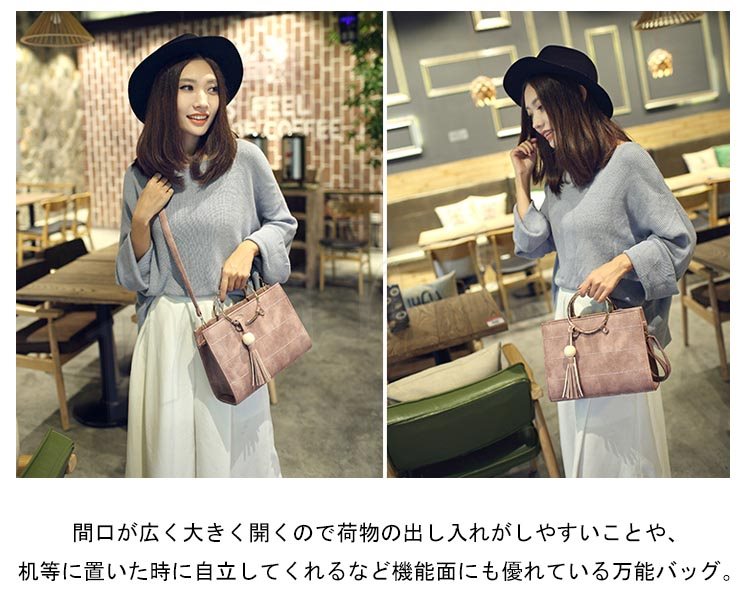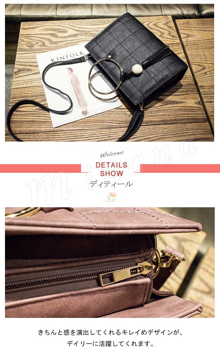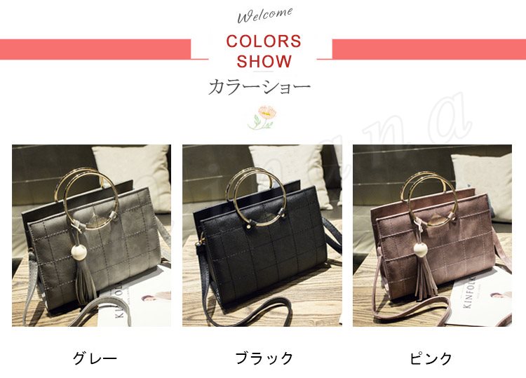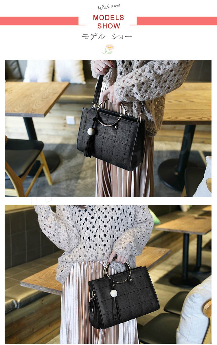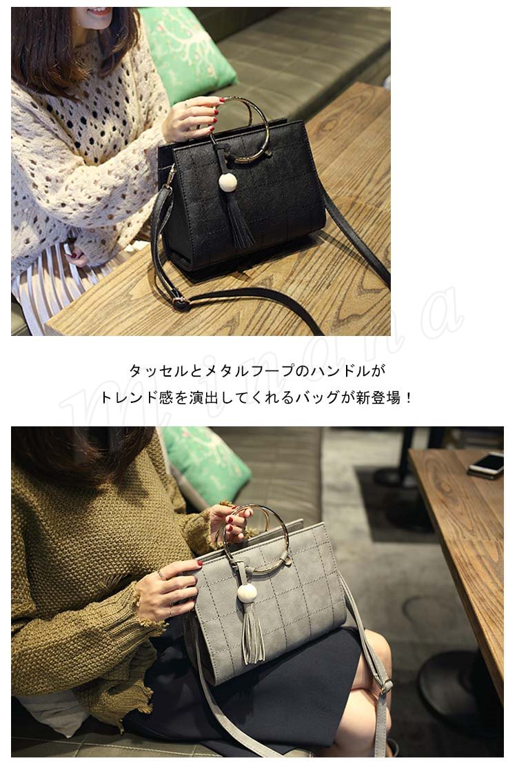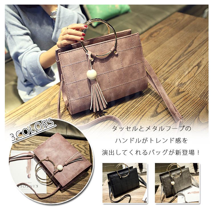 タッセル付き リングハンドルバッグ 2way ハンドバッグ ショルダーバッグ メタルフープ バッグ メタルリング 2way 斜めがけバッグ シンプル