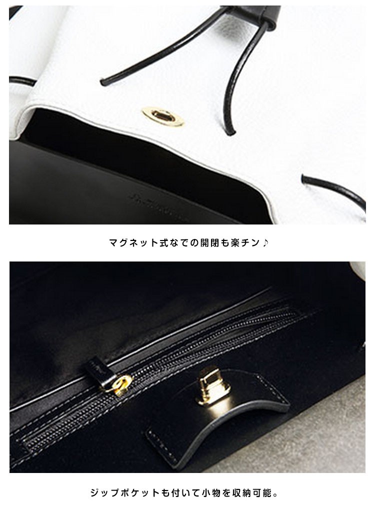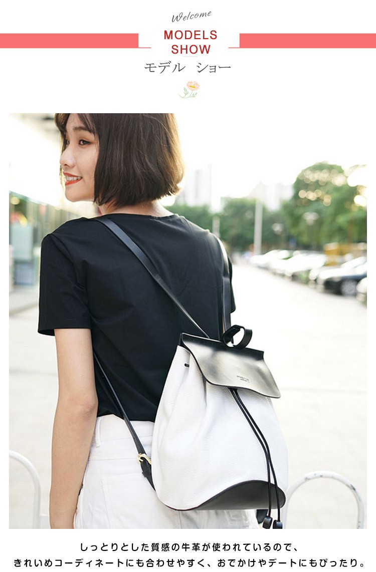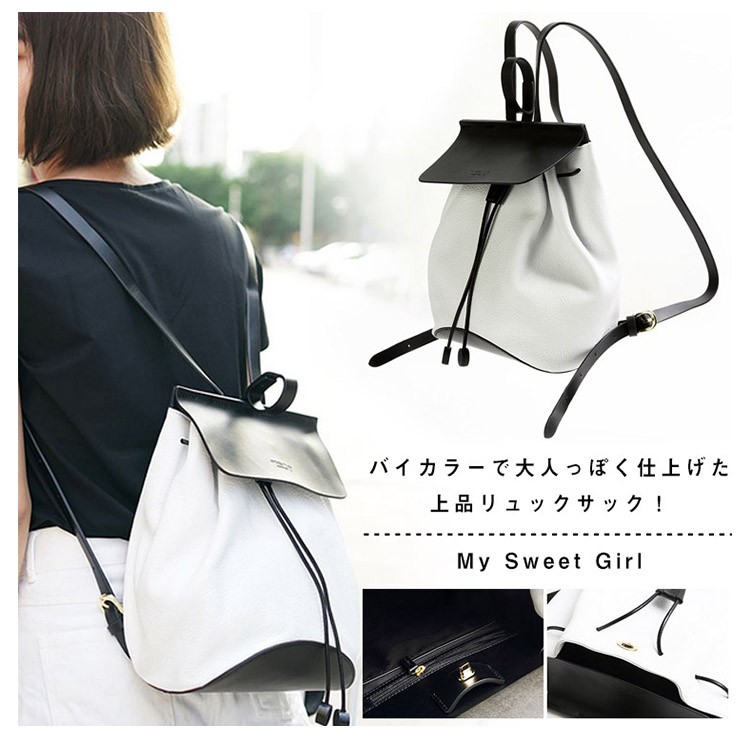 | バイカラーで大人っぽく仕上げた上品リュックサック! しっとりとした質感の牛革が使われているので、きれいめコーディネートにも合わせやすく、おでかけやデートにもぴったり。 通勤バッグとして使うのもおすすめです。 | |