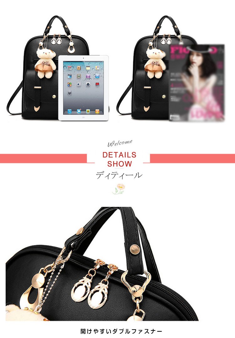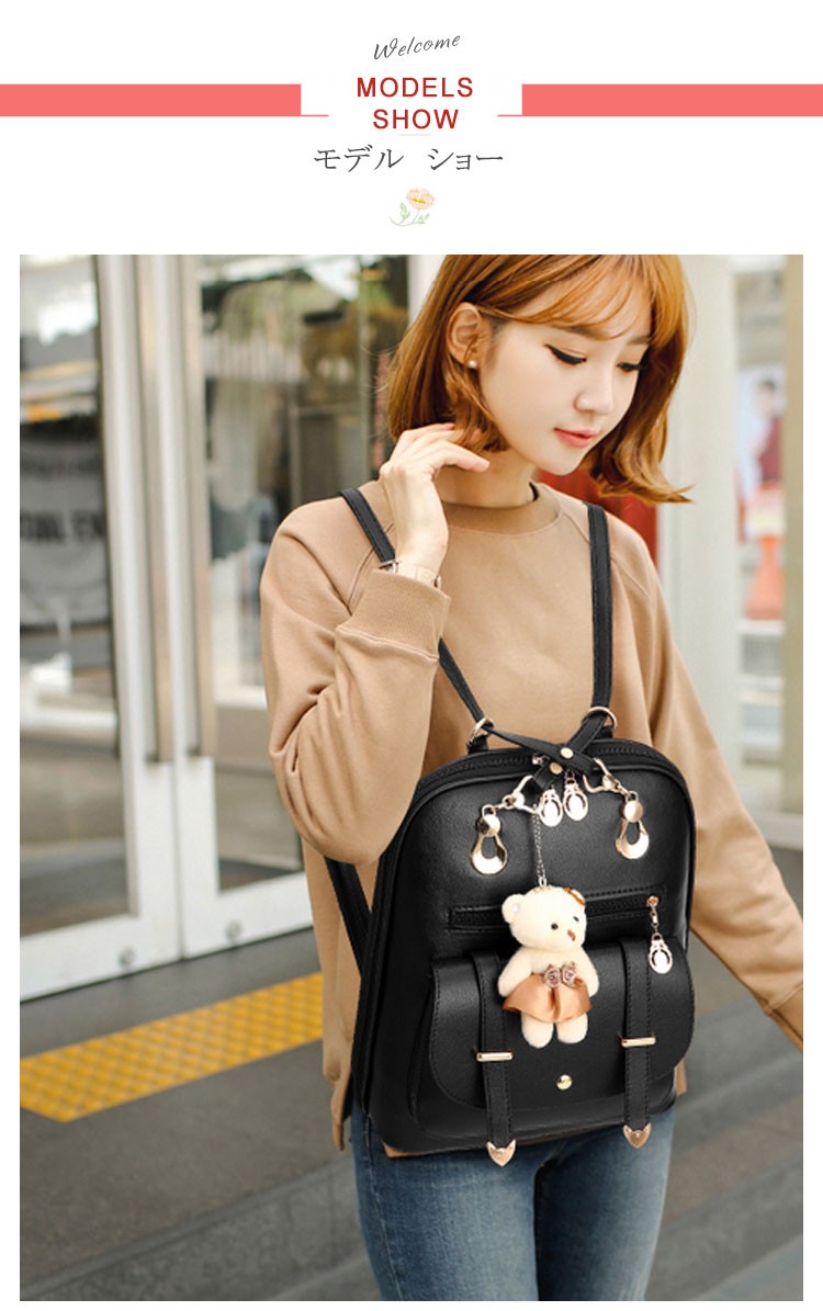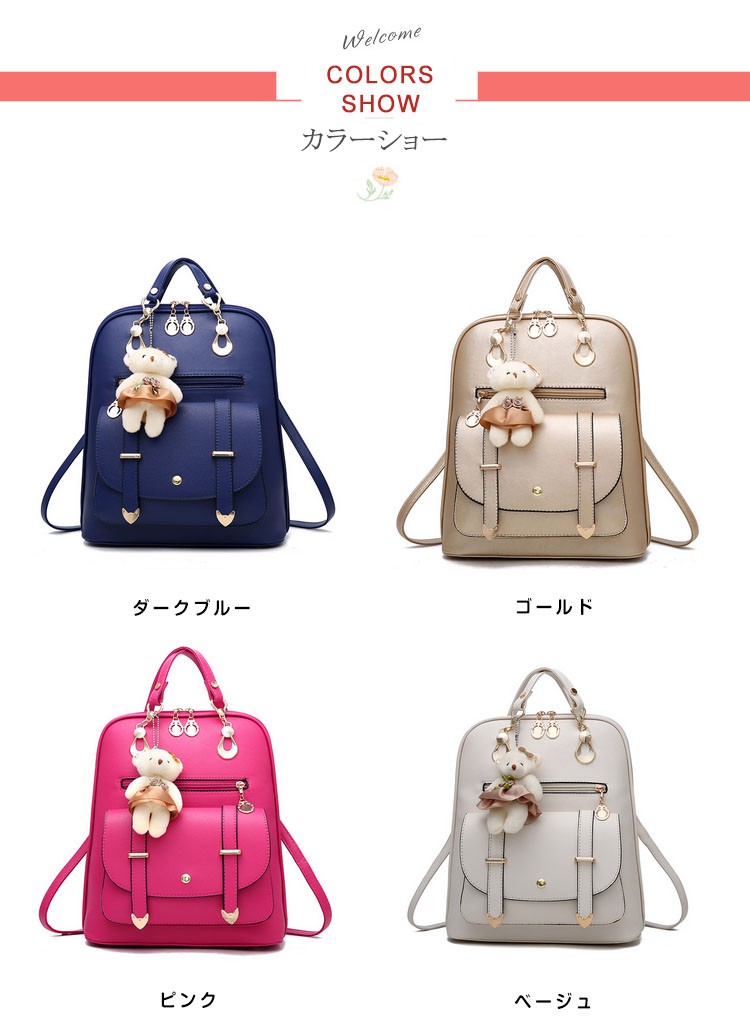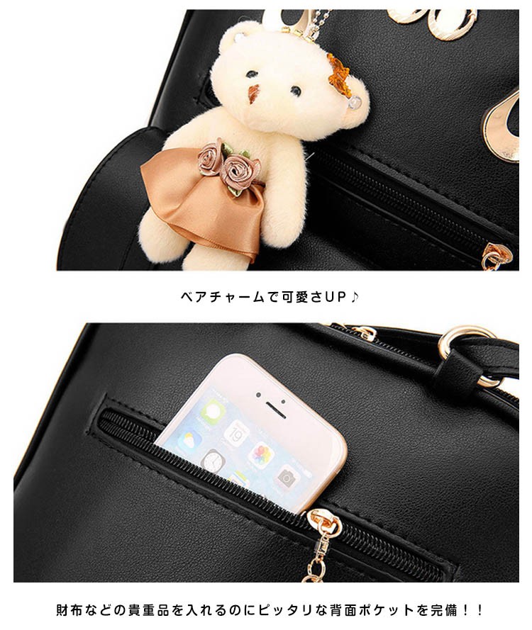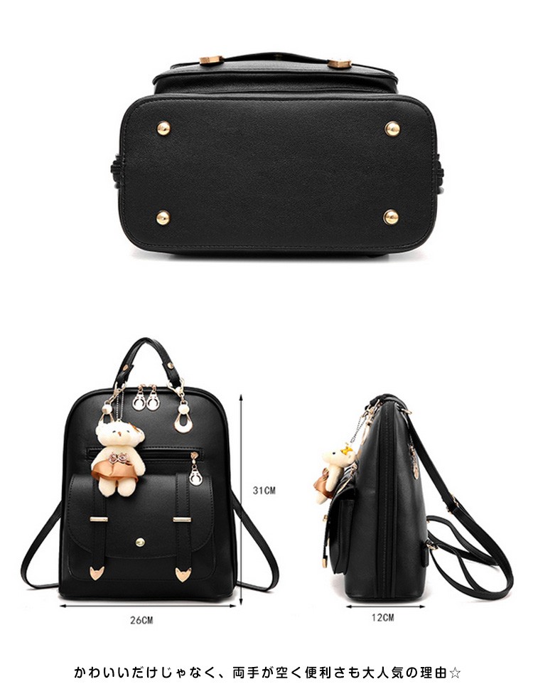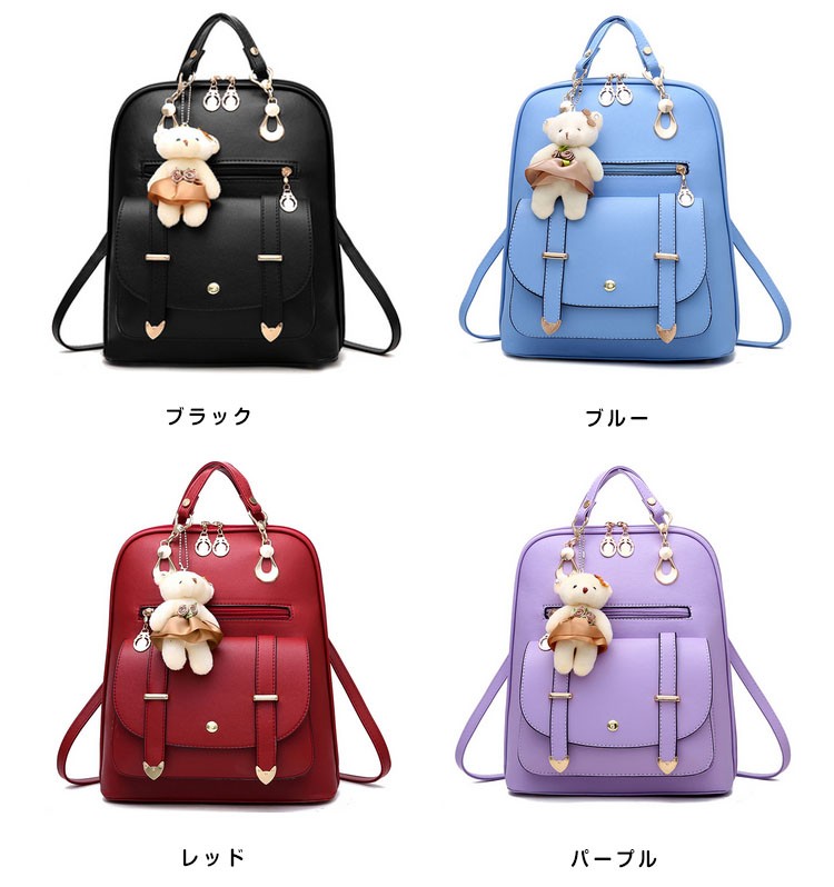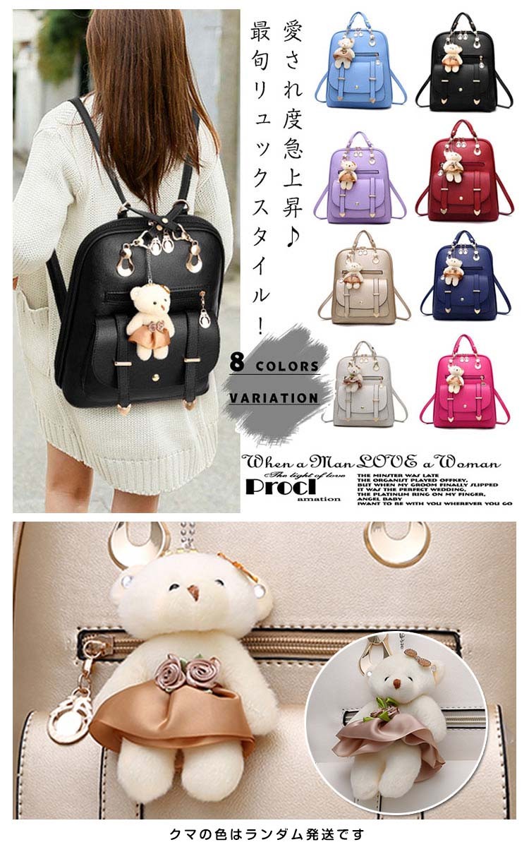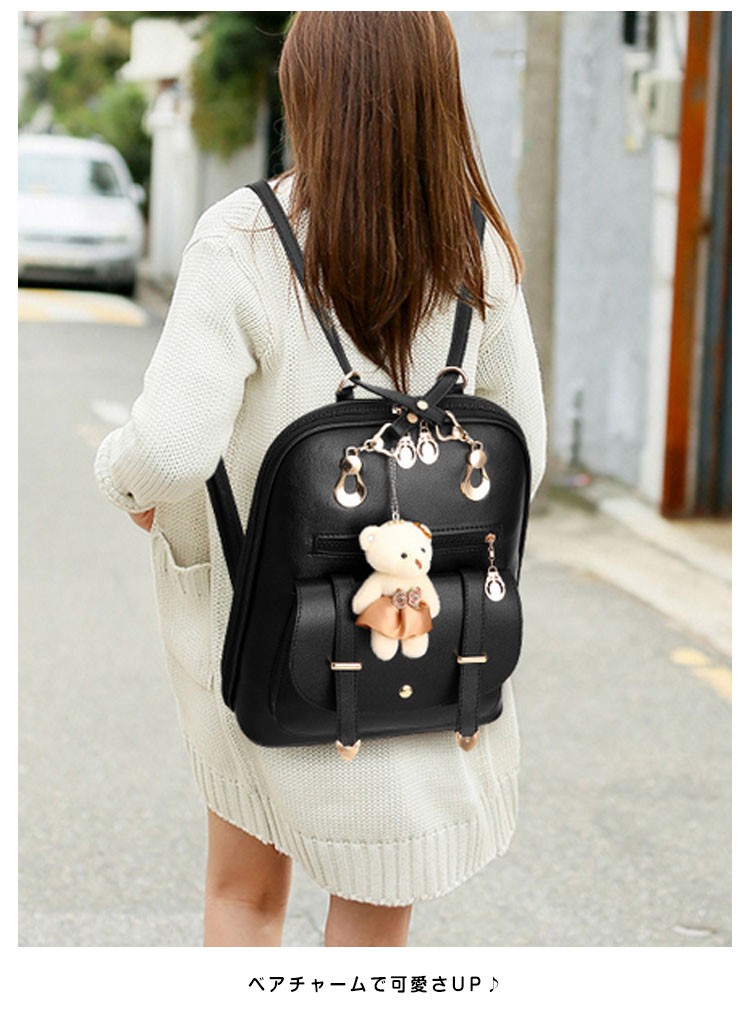可愛い ベアチャーム リュック レディース リュックサック 大人 リュック レザー 通勤 通学 デイパック バックパック リュックバッグ バッグ