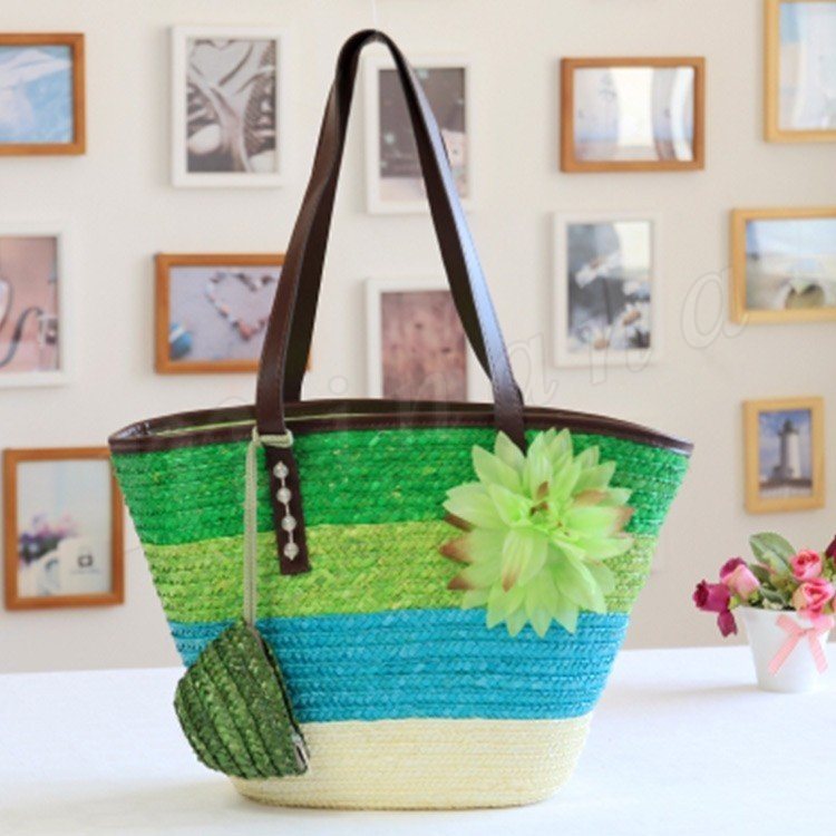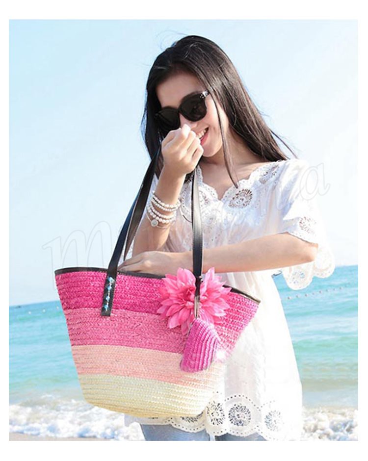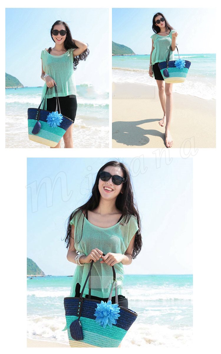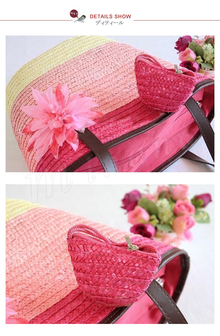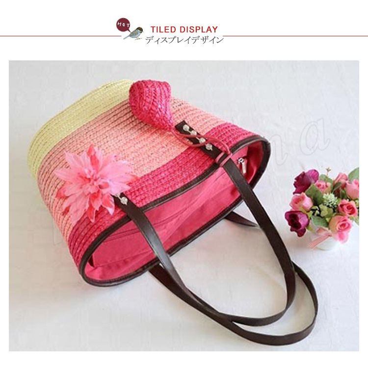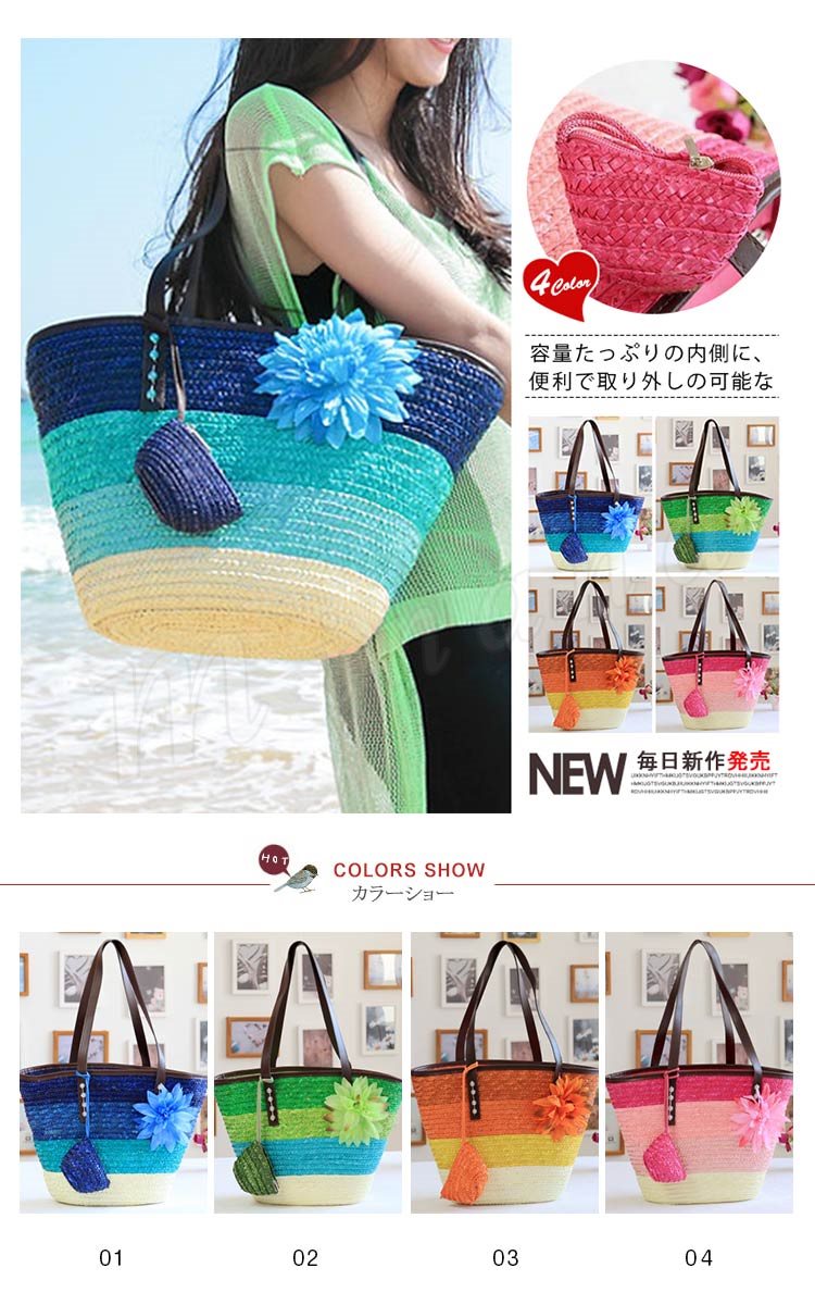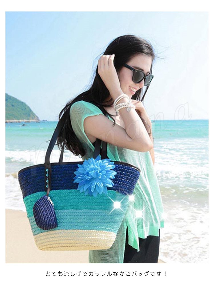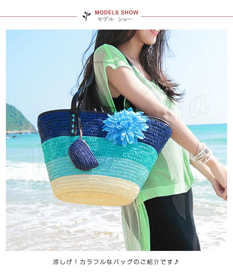 トートバッグ レディース かごバッグ ビーチバッグ ハンドバッグ ストローバッグ 鞄 ファスナー付き チャック かわいい ボーダー グラデーション 大