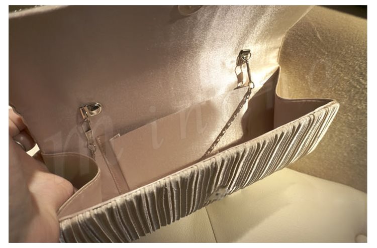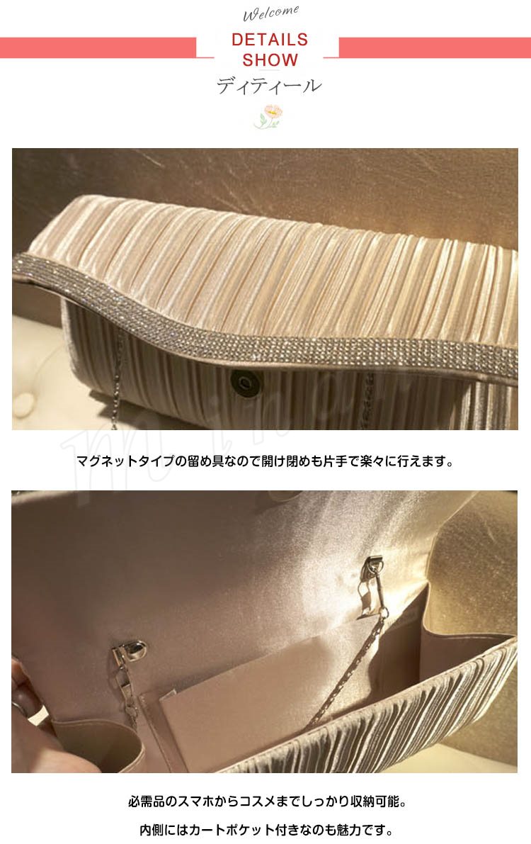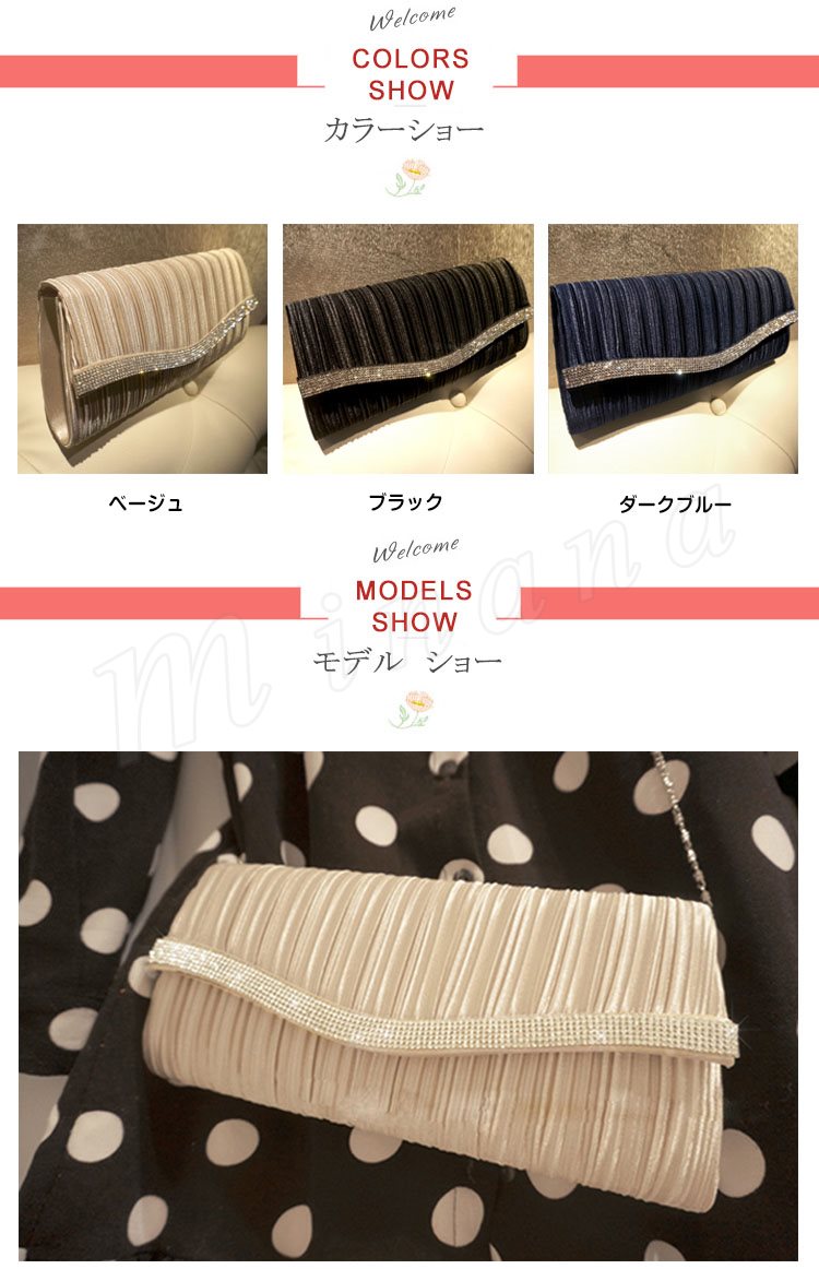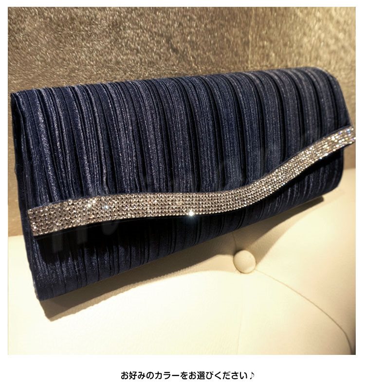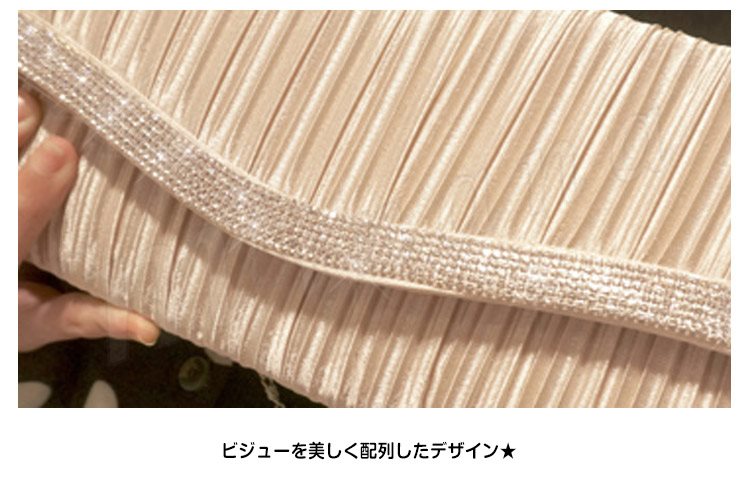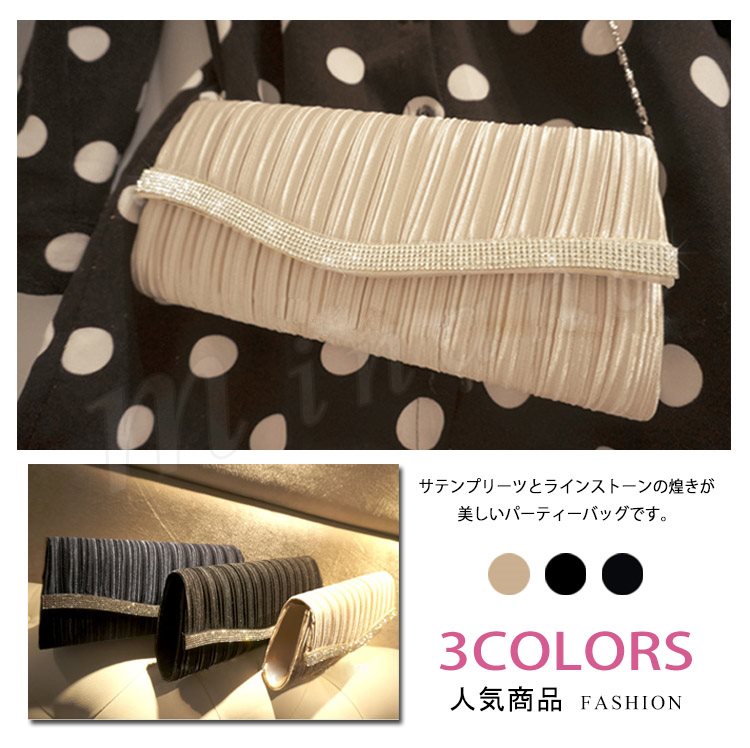 サテンプリーツとラインストーンの煌きが美しいパーティーバッグです。