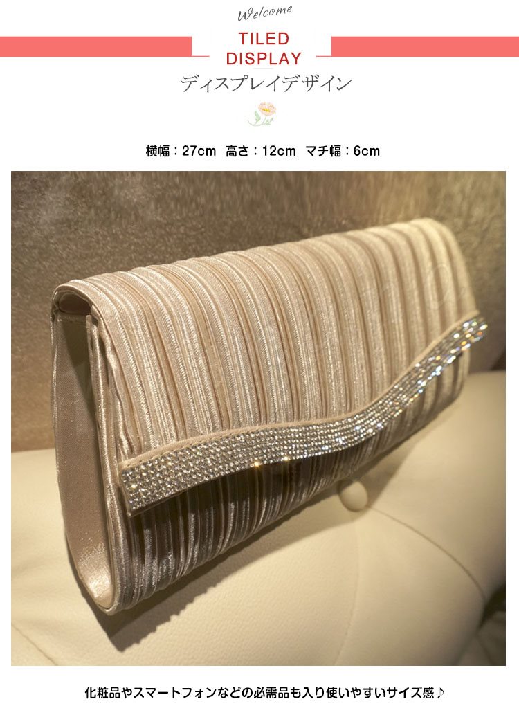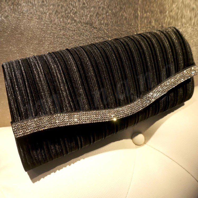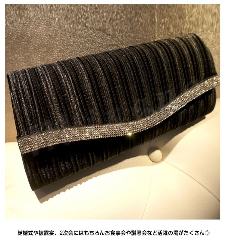 キラキラ 結婚式 バッグ パーティーバッグ ビジュー サテン ラインストーン クラッチバッグ フォーマル バッグ サテン プリーツパーティーバッグ お