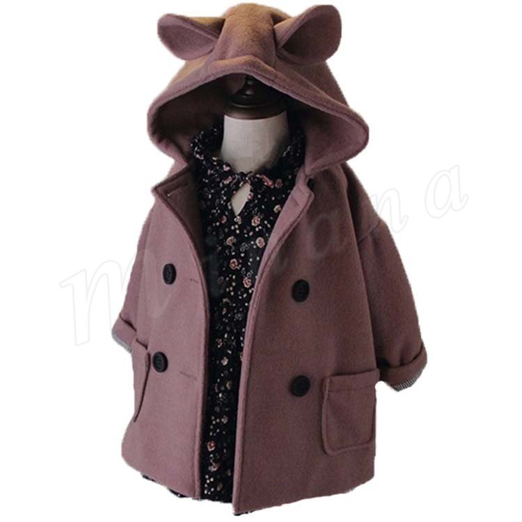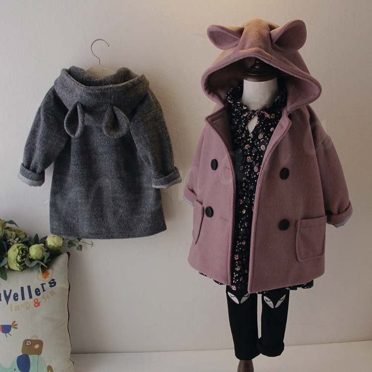防寒コート/子供/女の子/耳付きコート/コートアウター/ロングコート/カジュアルコート/普段着/子供服/ポケット付き/ダブルボタン付き/厚手/