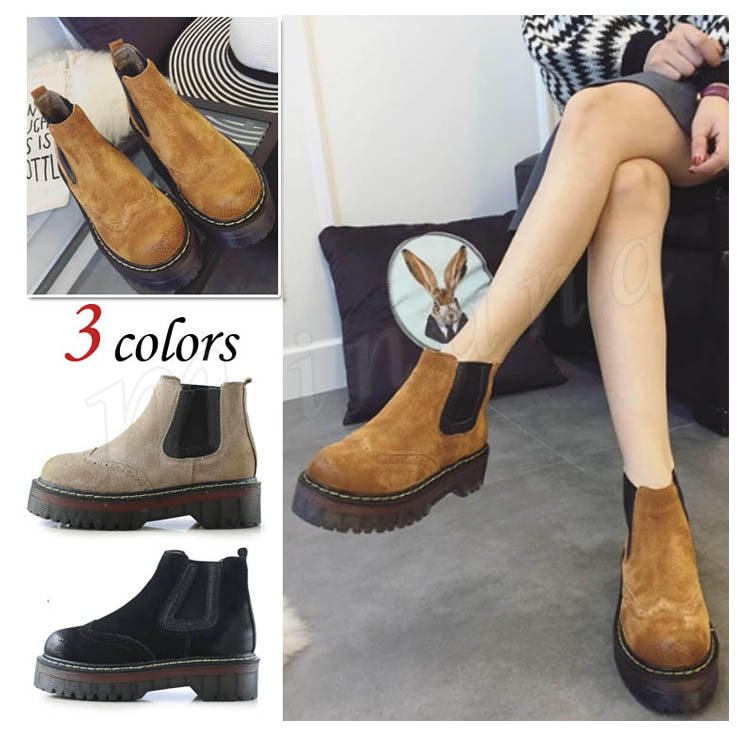 【ョートブーツ レディース】 サイドゴアブーツ レディース 厚底 サイドゴアブーツ 痛くない靴 大きいサイズ ローヒール ヒール4.5cm