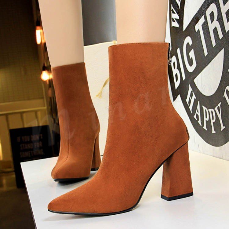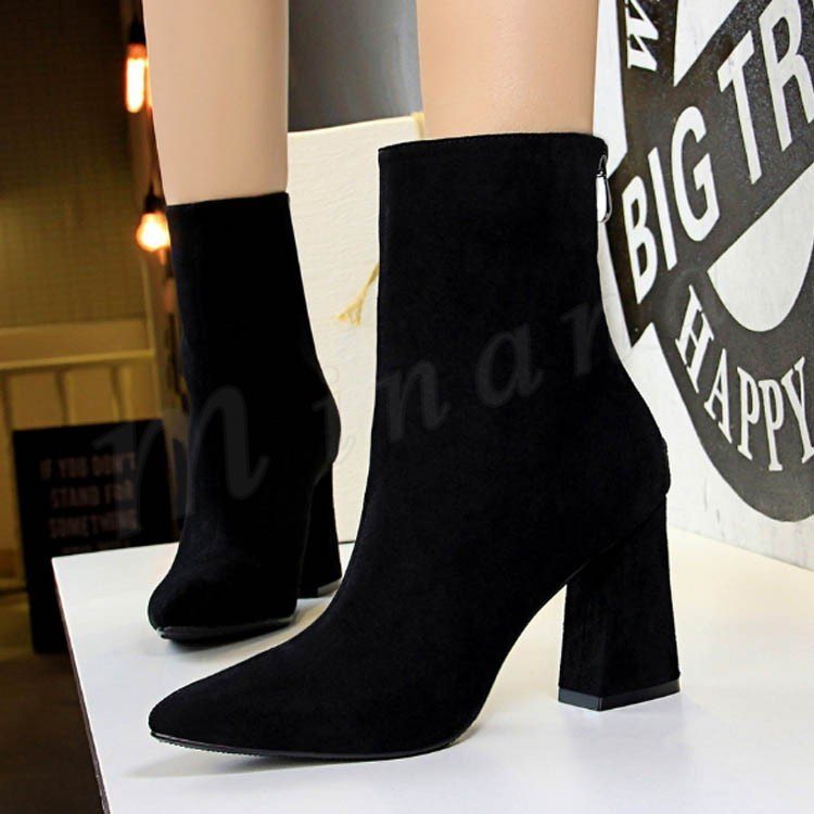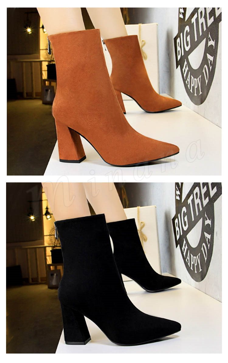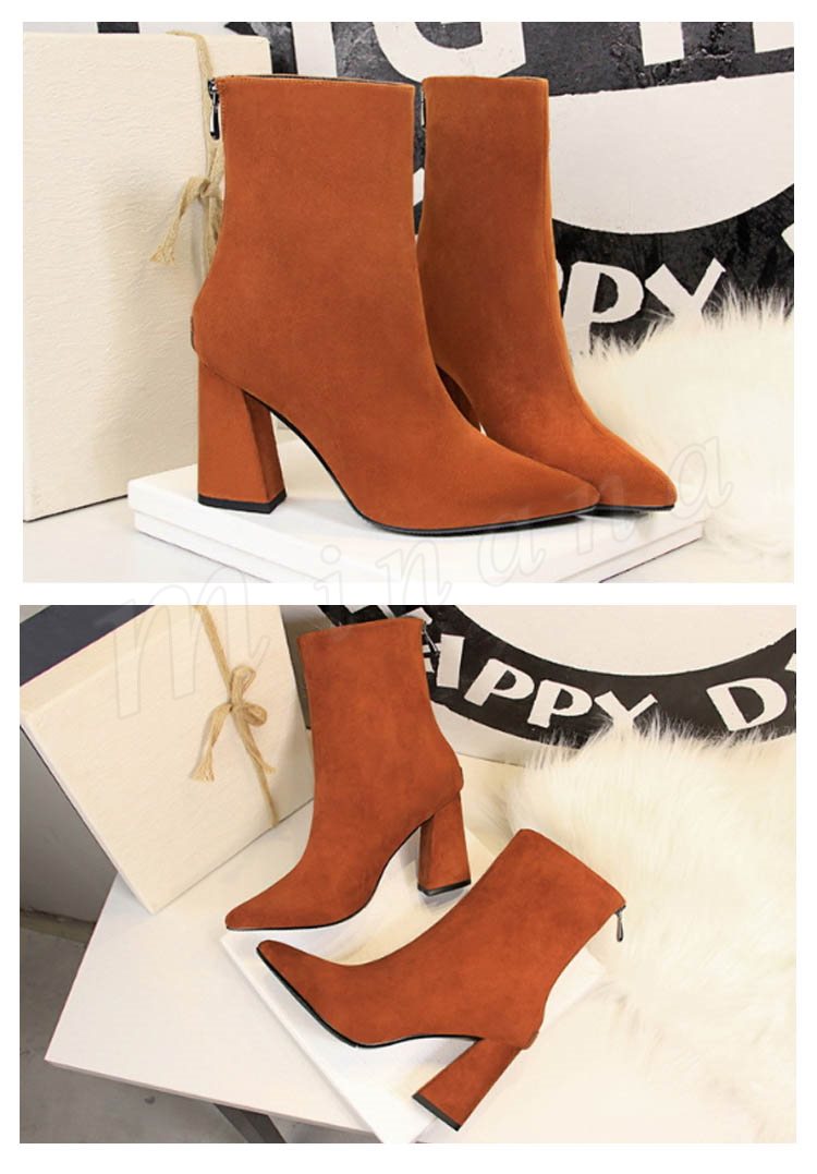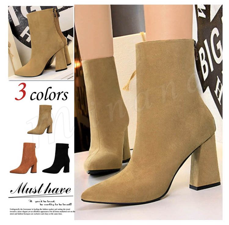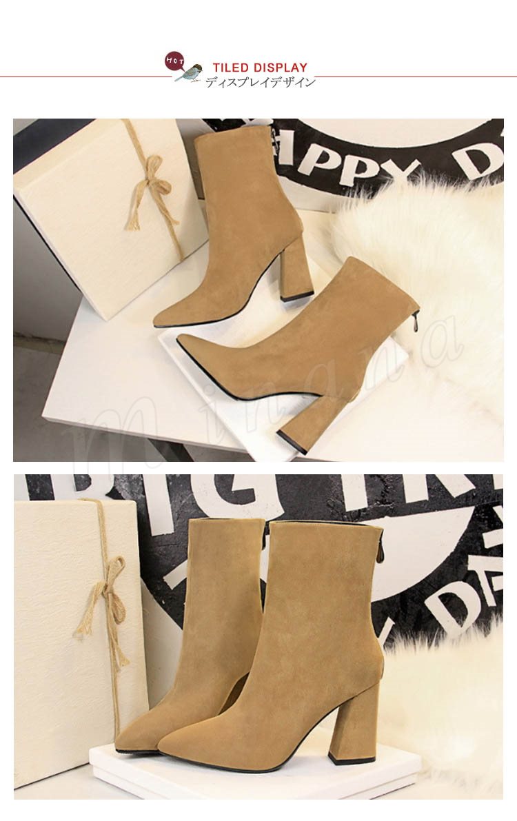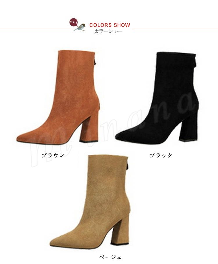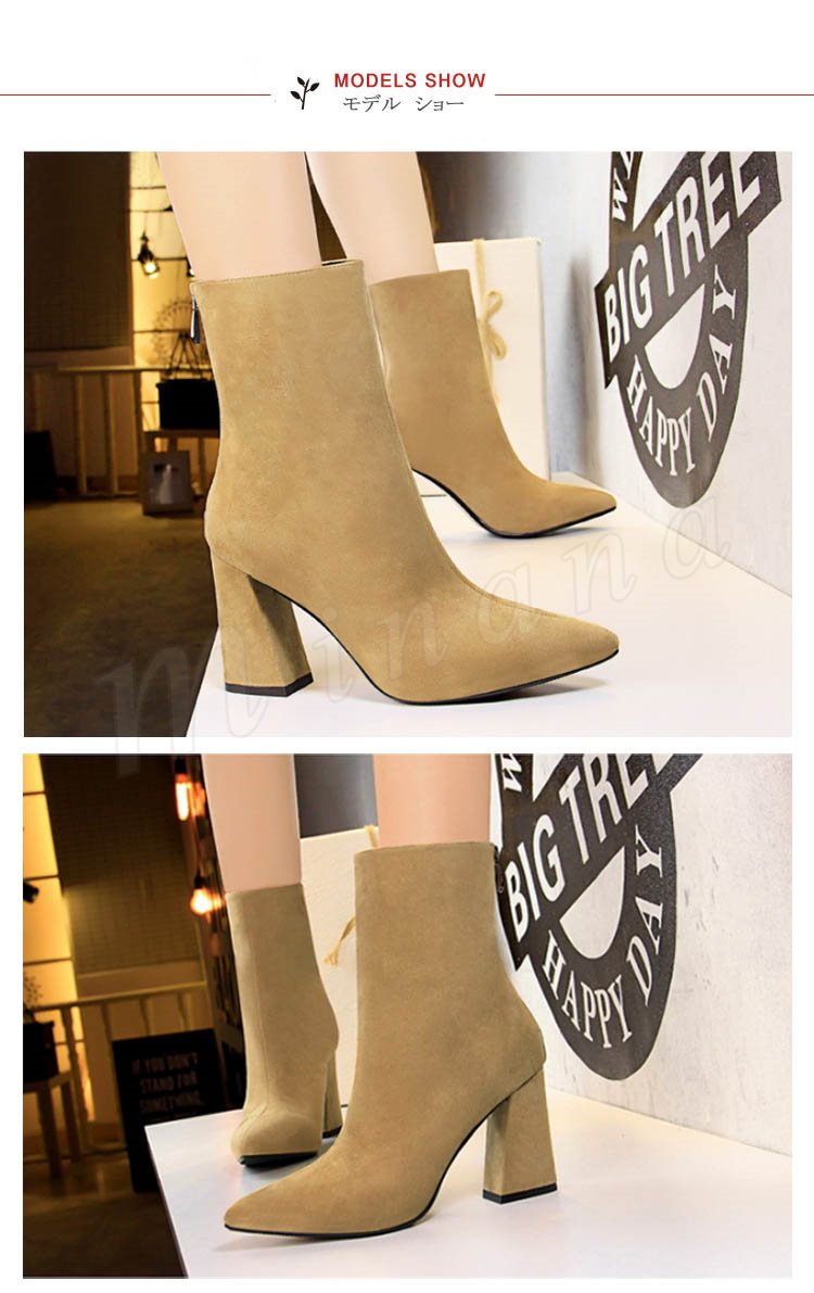 ショートブーツ レディース 歩きやすい 太ヒール ハイヒール レディース ヒール スエード ブーツ ショート ブーティー|靴 ショートブーティ ポイン