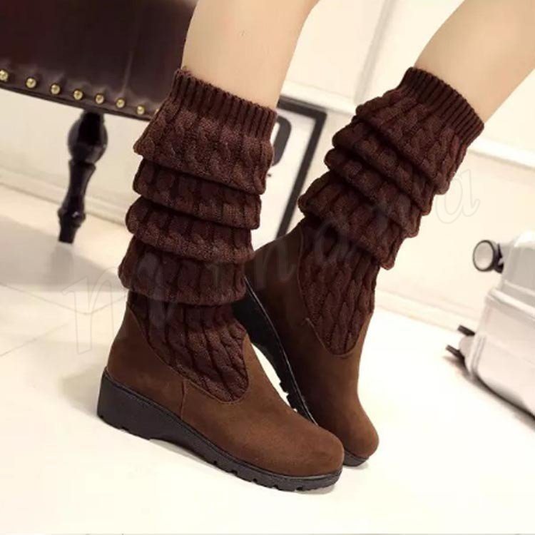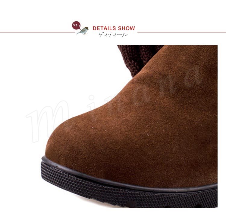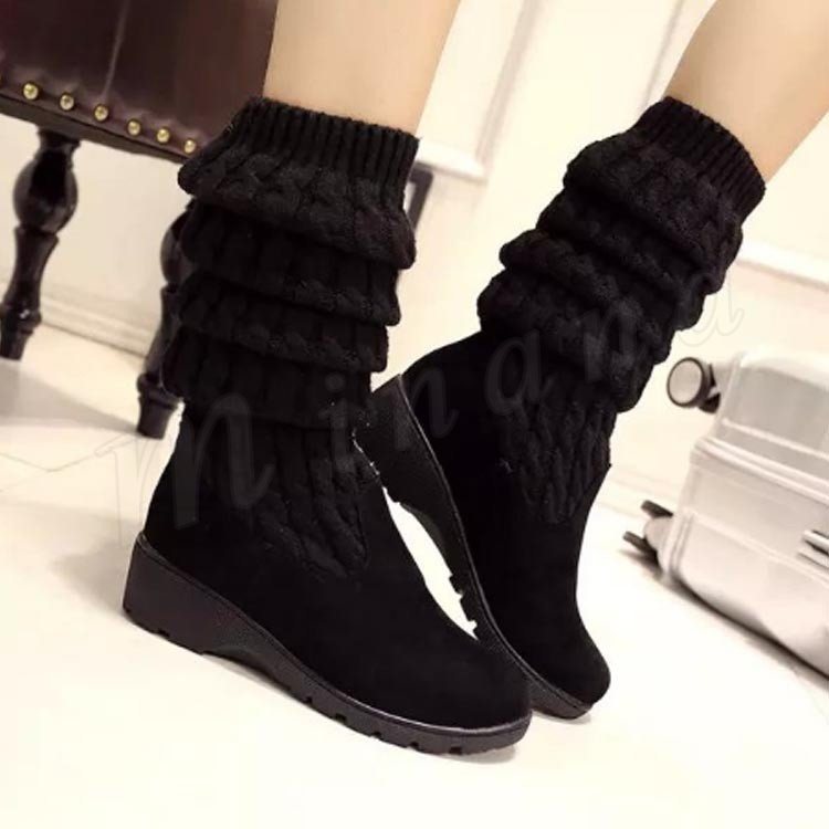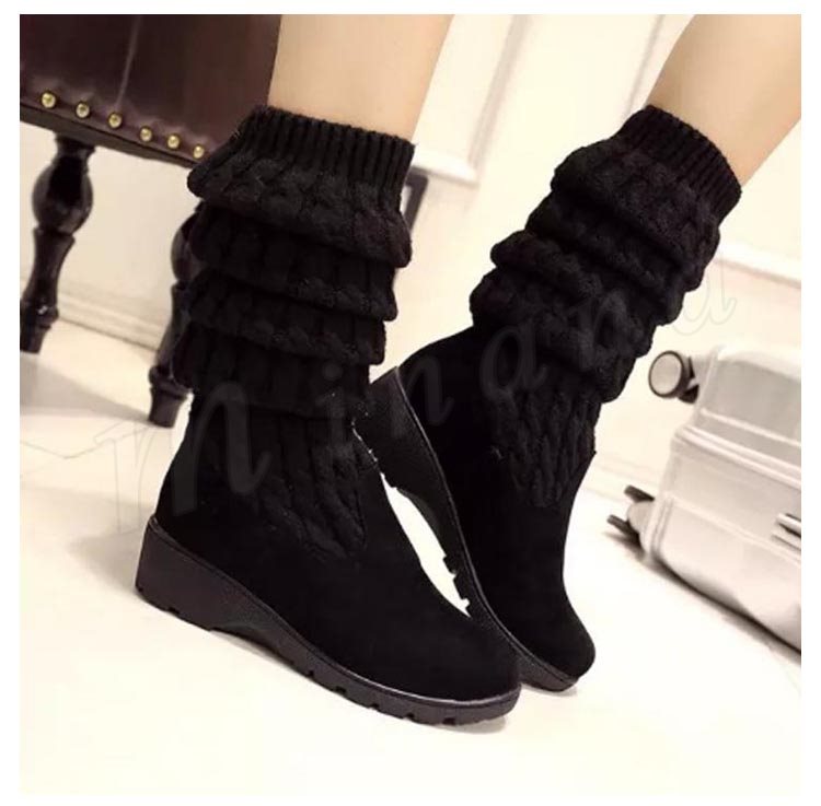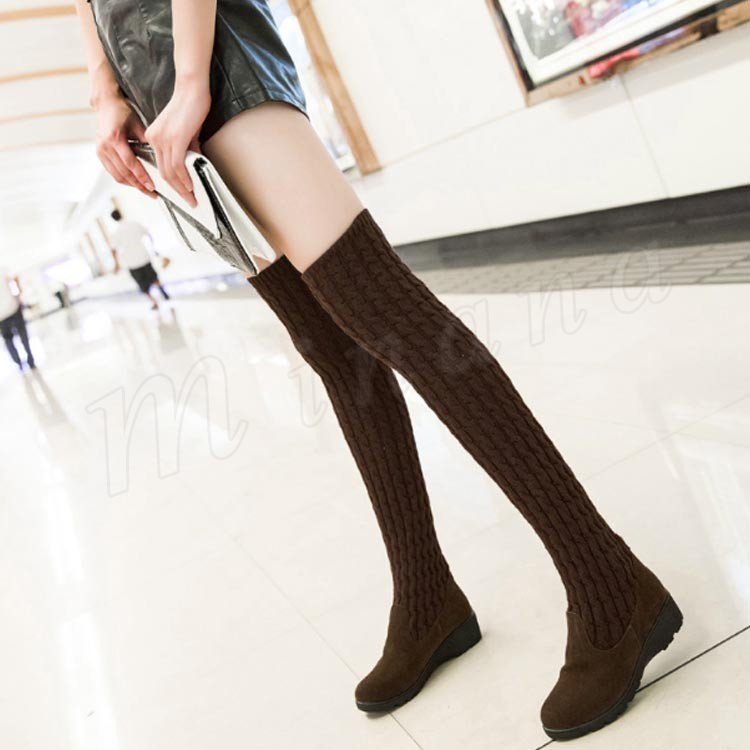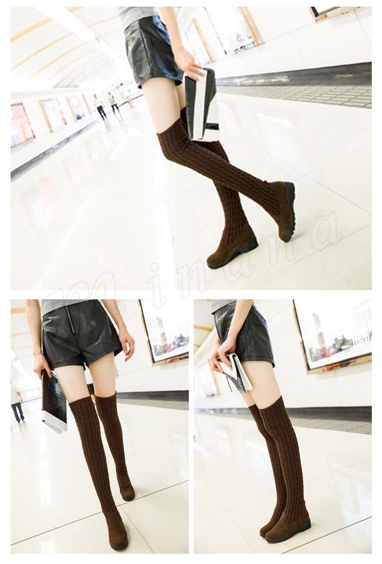 シャーリング/ニーハイ/暖かいニットロングブーツ/ニーハイブーツ/ブラックブーツ