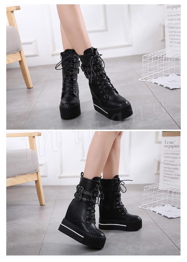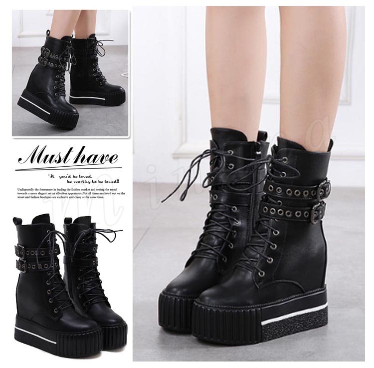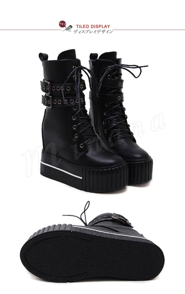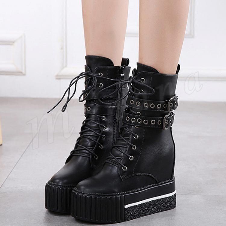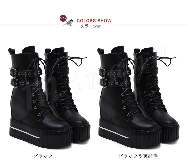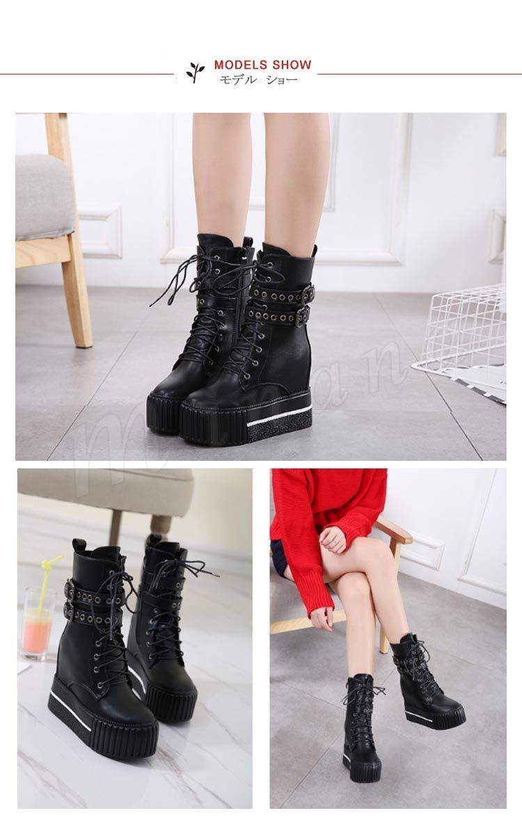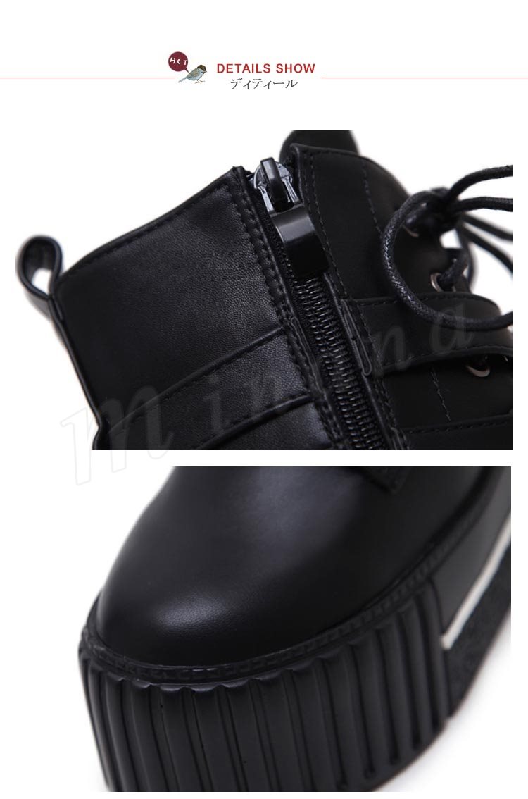 厚底ブーツ レディース レースアップショートブーツ 秋冬 インヒール レースアップショート厚底ブーツ 編み上げブーツ ブラック