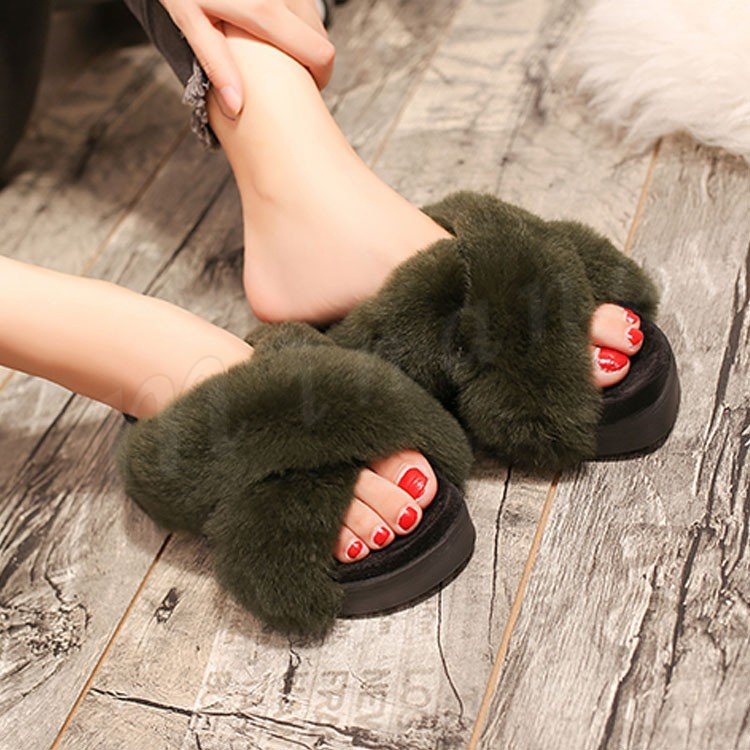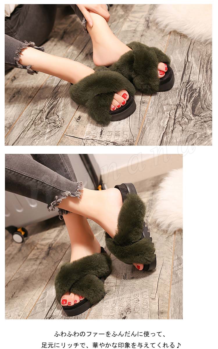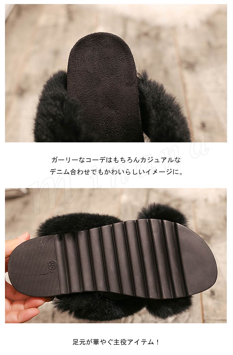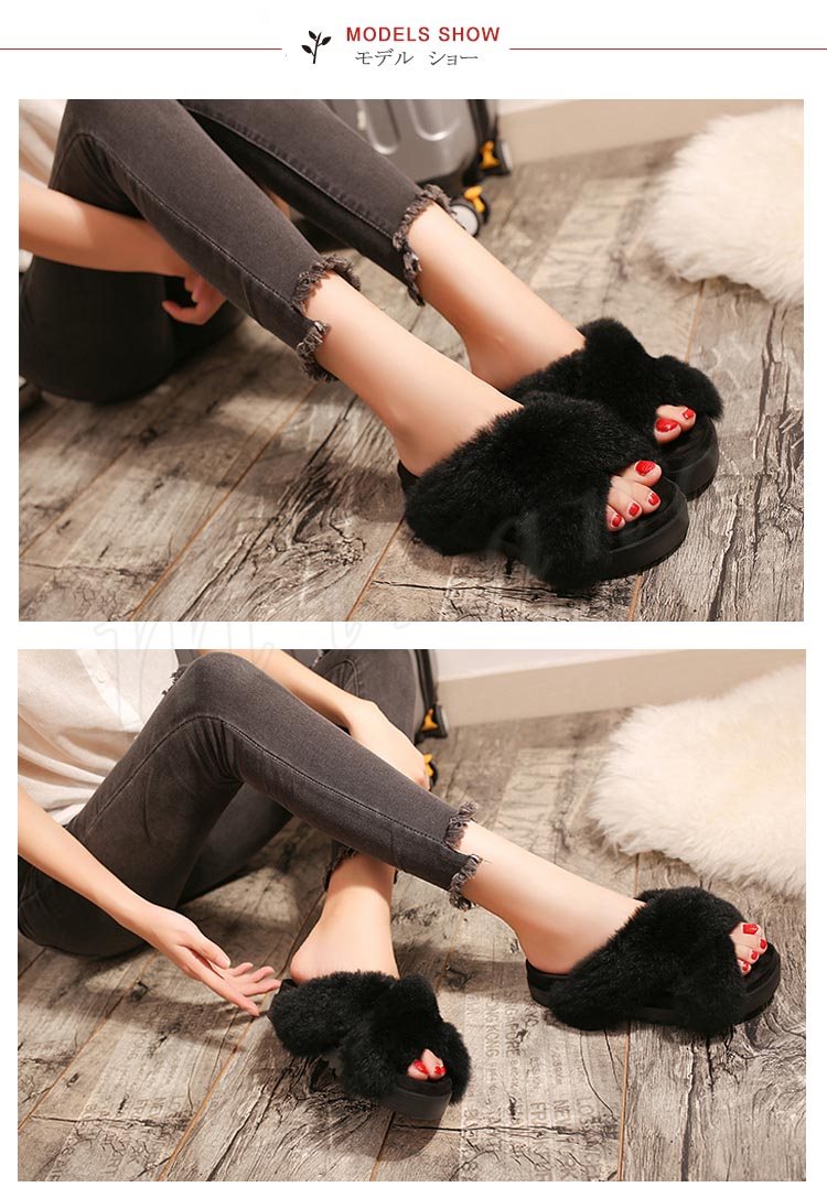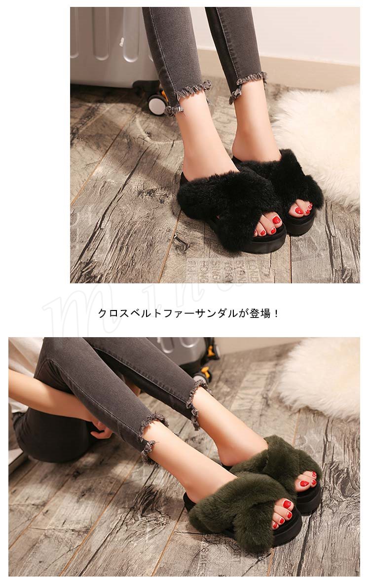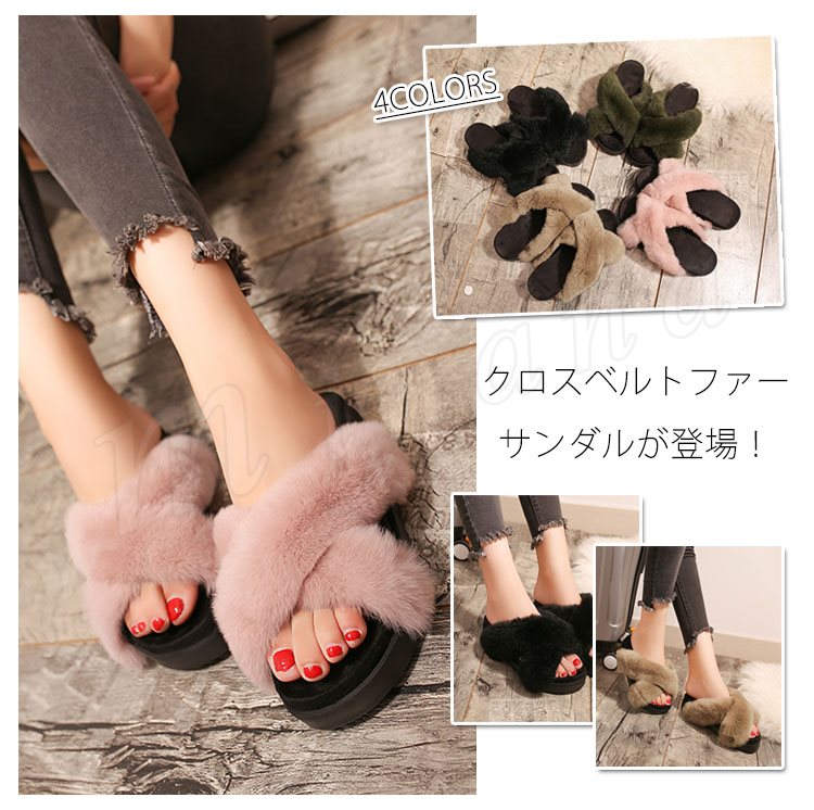 クロスベルト ファーサンダル 厚底 サンダル ウサギファー リアルファー サンダル 厚底 ファー サンダル ファーサンダル 厚底 靴 シューズ パンプ