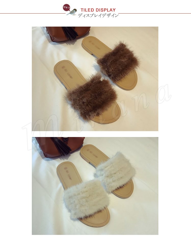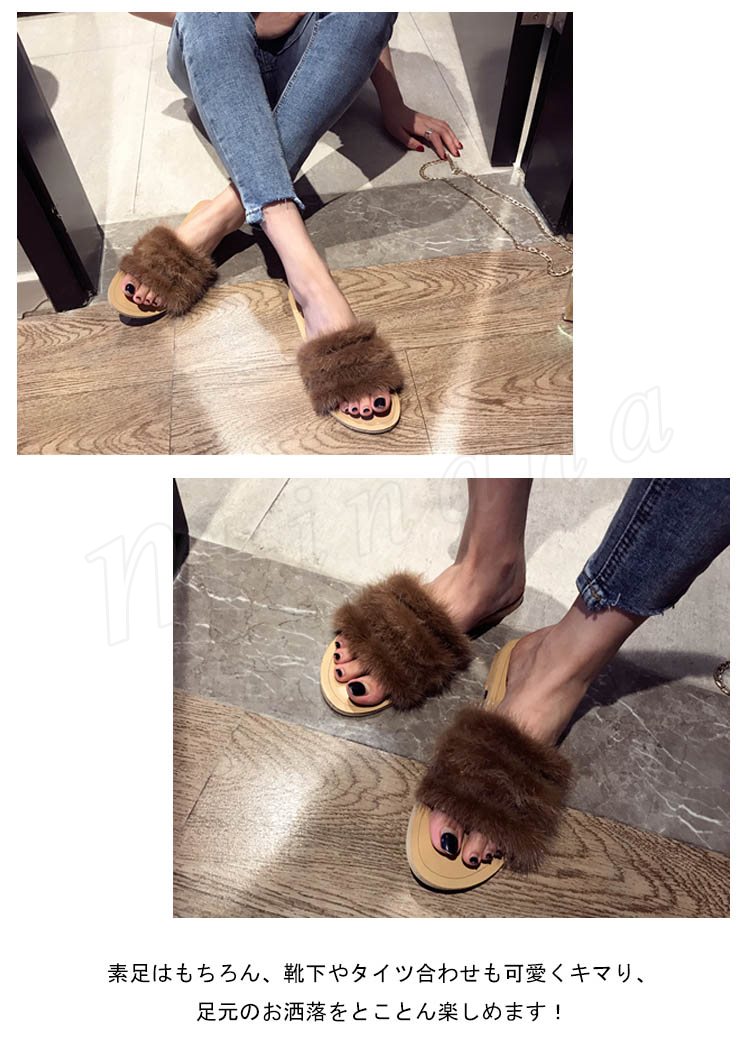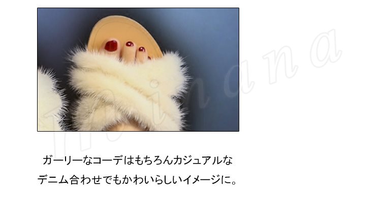 | 足元を美しく魅せる、ぺたんこタイプファーサンダルが登場☆ ふわふわのファーをふんだんに使って、足元にリッチで、華やかな印象を与えてくれる♪ 素足はもちろん、靴下やタイツ合わせも可愛くキマり、足元のお洒落をとことん楽しめます! | |
