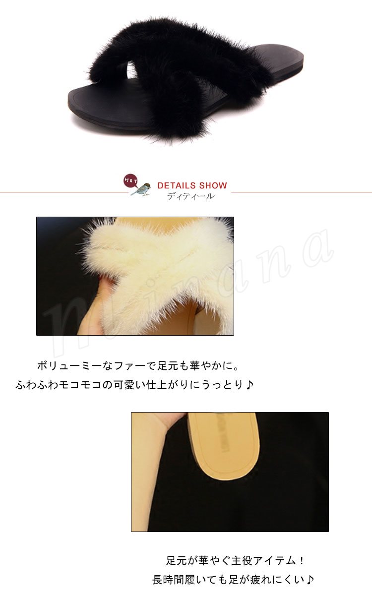 クロスファーサンダル ぺたんこ サンダル ファーサンダル ファー サンダル 靴 シューズ 歩きやすい サンダル レディース