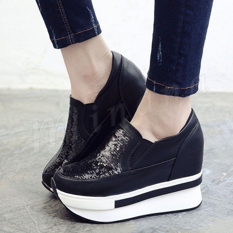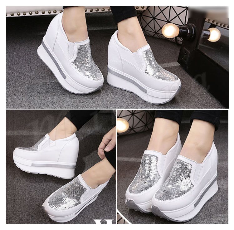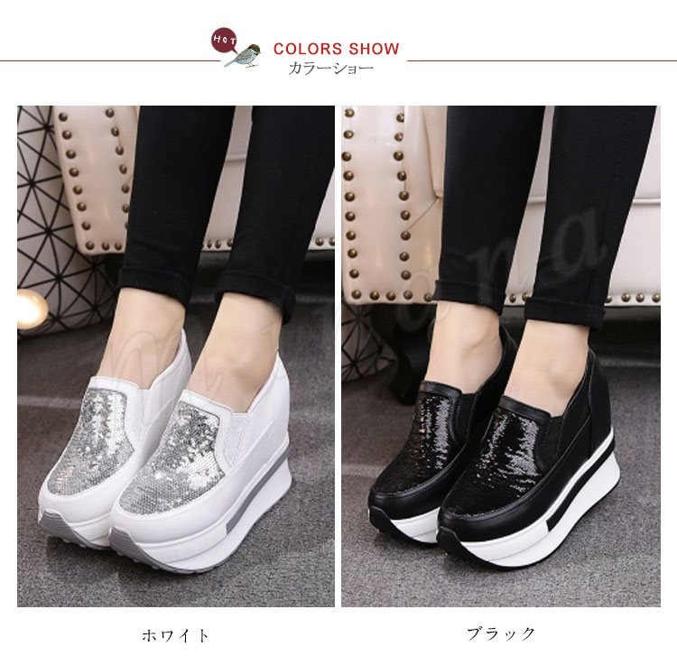 スニーカー 厚底 レディース スリッポン 靴 インヒール スニーカー 厚底 スニーカー 無地 春 秋 軽量 歩きやすい カジュアル ホワイト ブラック