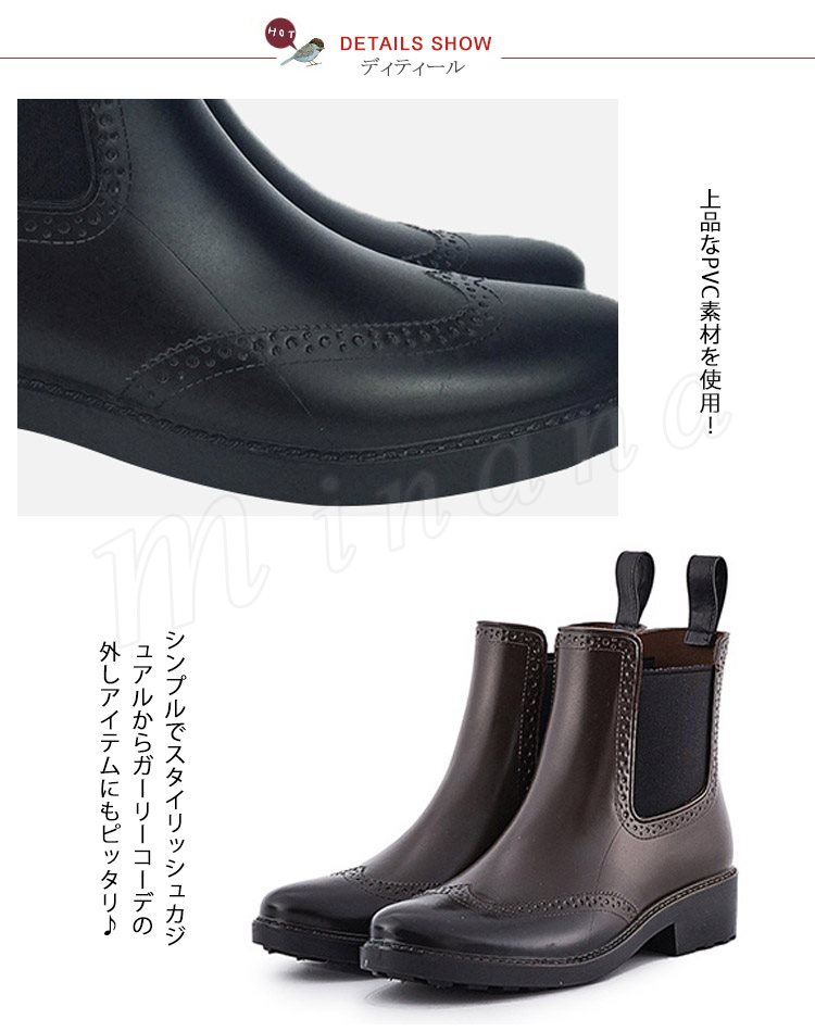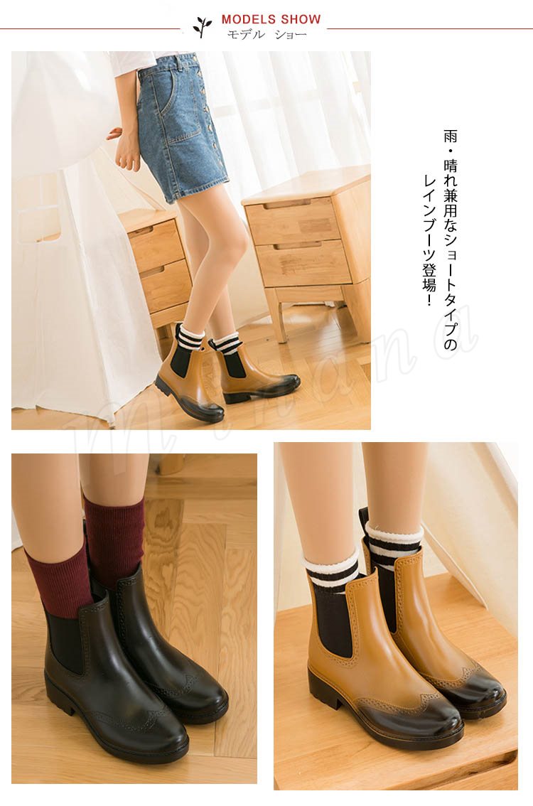 | 雨・晴れ兼用なショートタイプのレインブーツ登場! 雨の日もお洒落に決まる!!雨がやんでも恥ずかしくないおしゃれなレインブーツです! お洒落なサイドゴアデザインは脱ぎ履きも楽ちん♪ 雨の日だけでなく、雪の日にも使えるお役立ちレインブーツです! | |