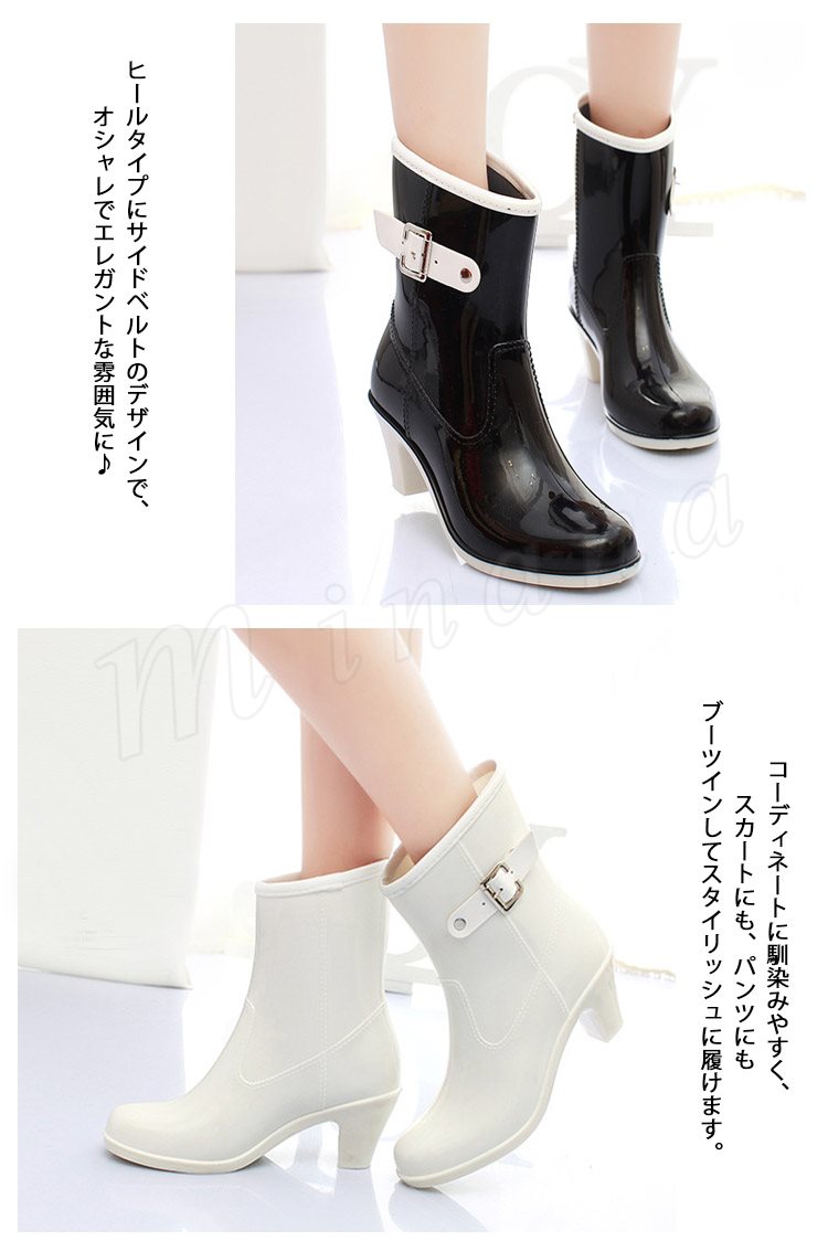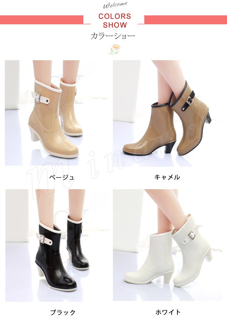 バイカラー レインブーツ レインブーティ ショート ベルト レインシューズ ヒール ショートブーツ 雨靴 防水 防寒 長靴 防滑 スノーシューズ 雪道